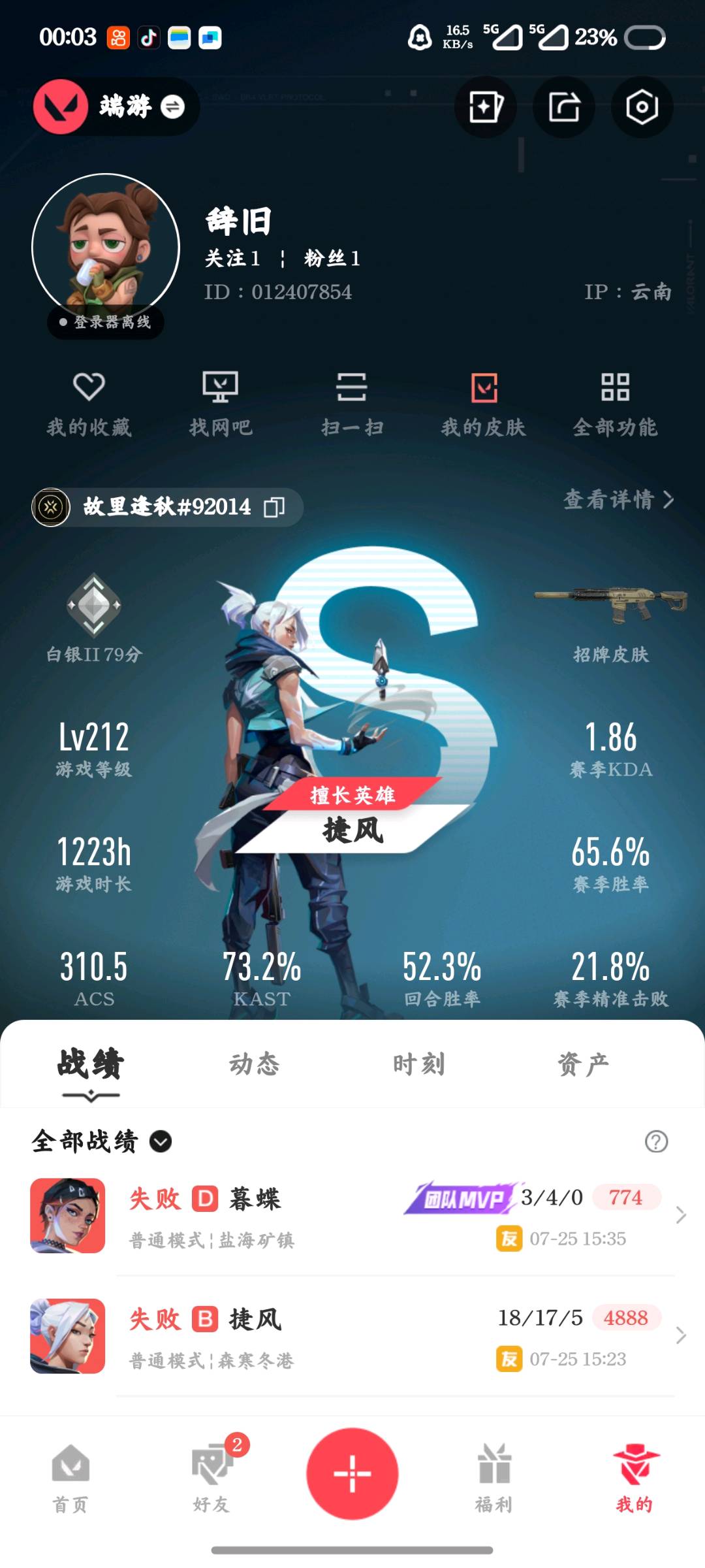 • 游戏区服:无畏契约-wegame / wegame / wegame