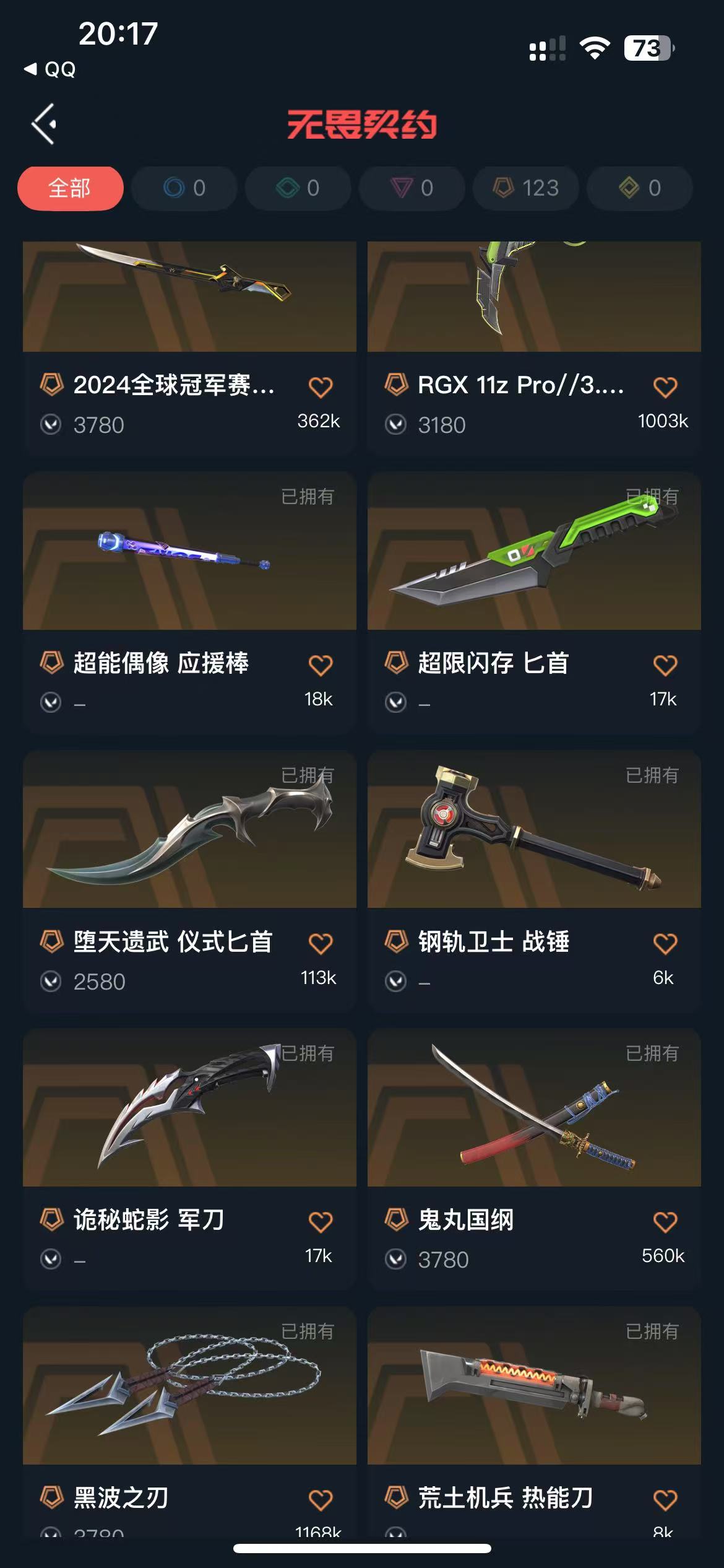 首页 > 租号大厅 > 无畏契约-wegame > wegame/wegame > 8.1W库存黑波、显卡爪刀、影钩、蝴蝶刀、盖亚复仇、塑水宗、混沌、侦查力量、掠影、紫金、奇点、虚空