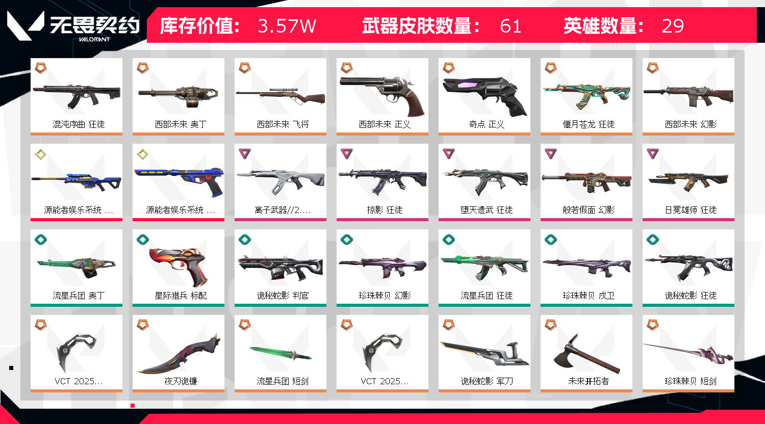 • 游戏区服:无畏契约-wegame / wegame / wegame