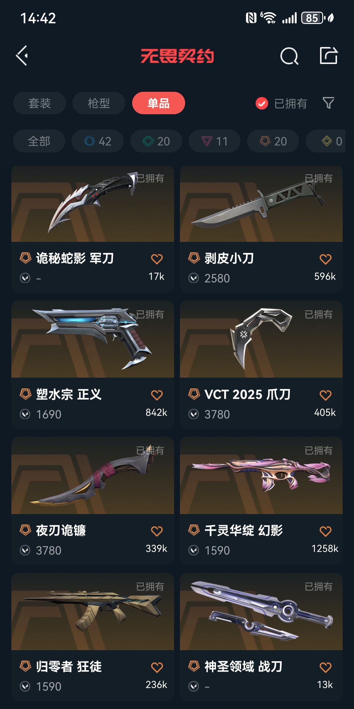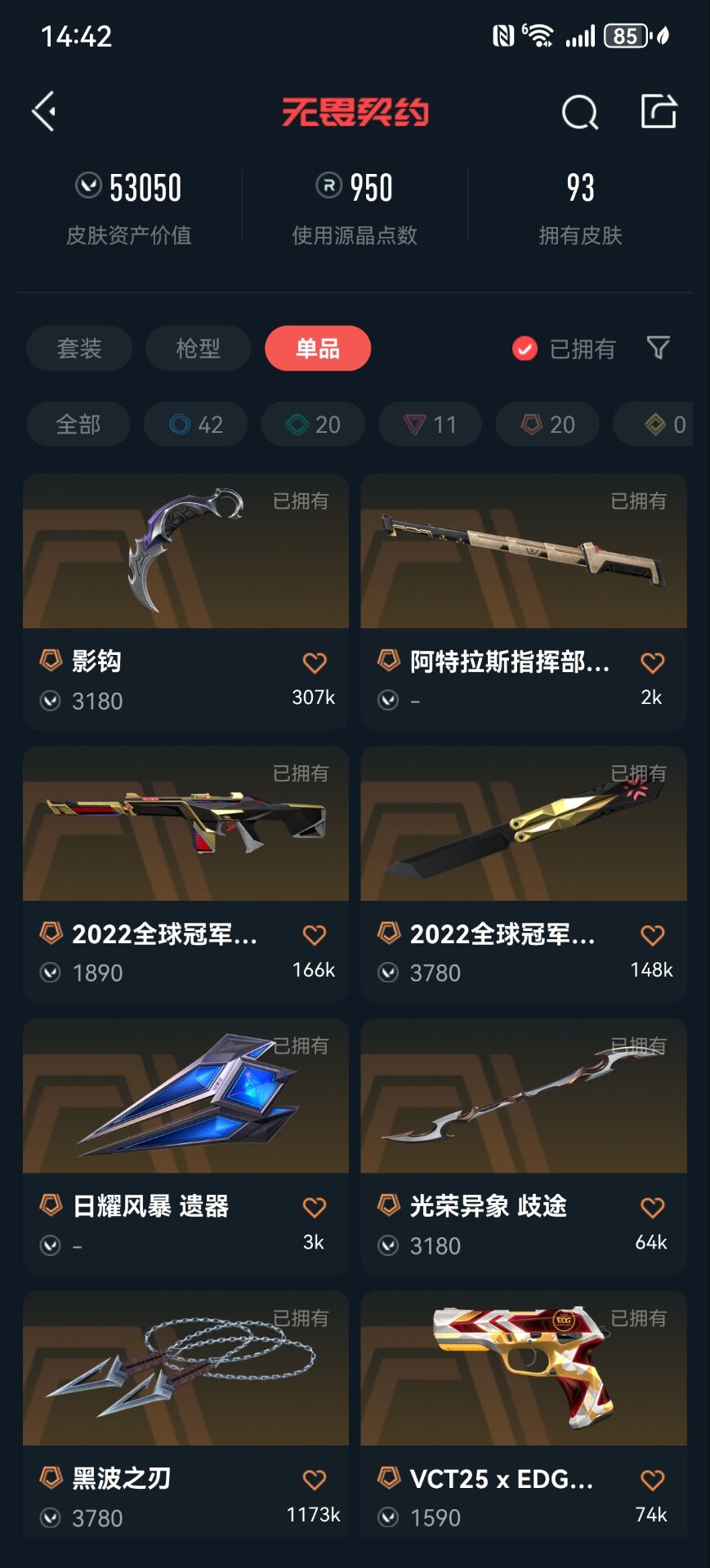 冻结秒解✨可排✨5W库存✨影钩✨黑波之刃✨22冠军套✨vct爪刀✨归零者 狂徒✨千灵华绽 幻影