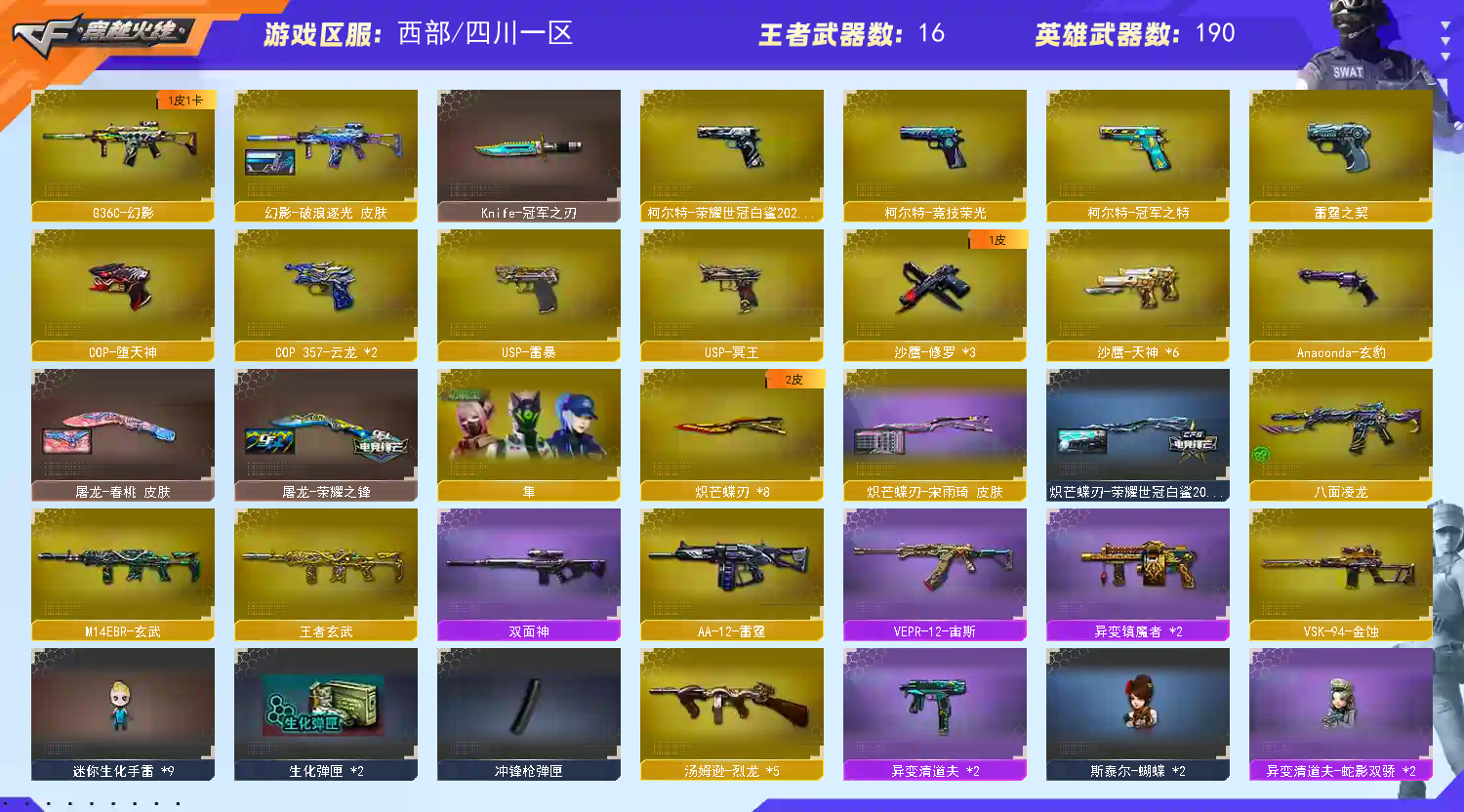 • 游戏区服:穿越火线 / 西部 / 四川一区