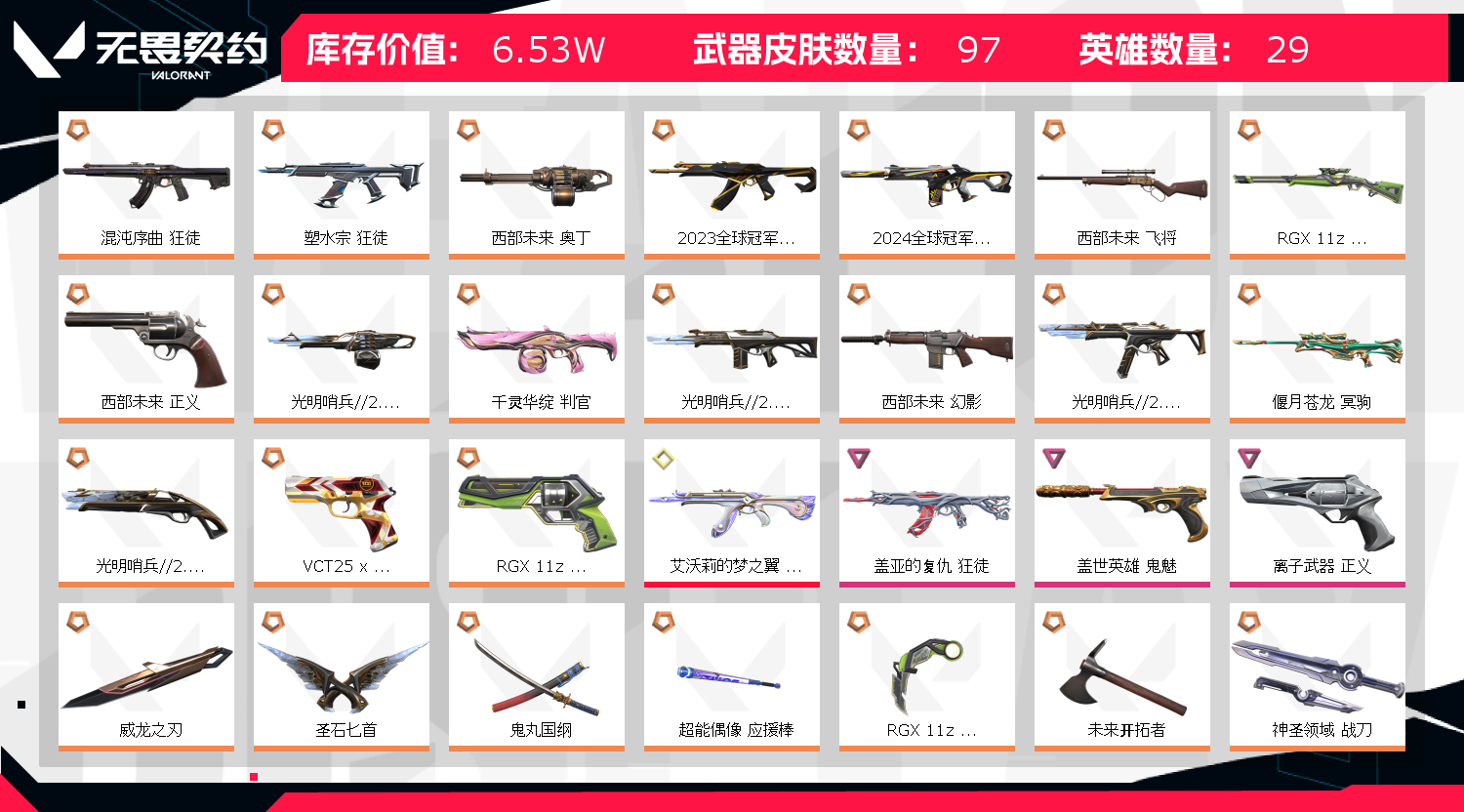 喜欢可以收藏;西部未来 奥丁,威龙之刃,盖亚的复仇 狂徒,混沌序曲 狂徒,塑水宗 狂徒,2023全球冠军赛 狂徒,2024全球冠军赛 幻影,