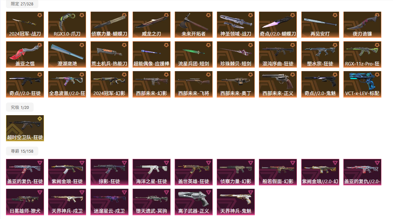 首页 > 租号大厅 > 无畏契约-wegame > wegame/wegame > 精氪毕业皮齐全✨西部未来套✨24冠军套✨奇点2.0套✨RGX威龙蝴蝶刀混沌盖亚紫金狂徒✨24侦查幻影