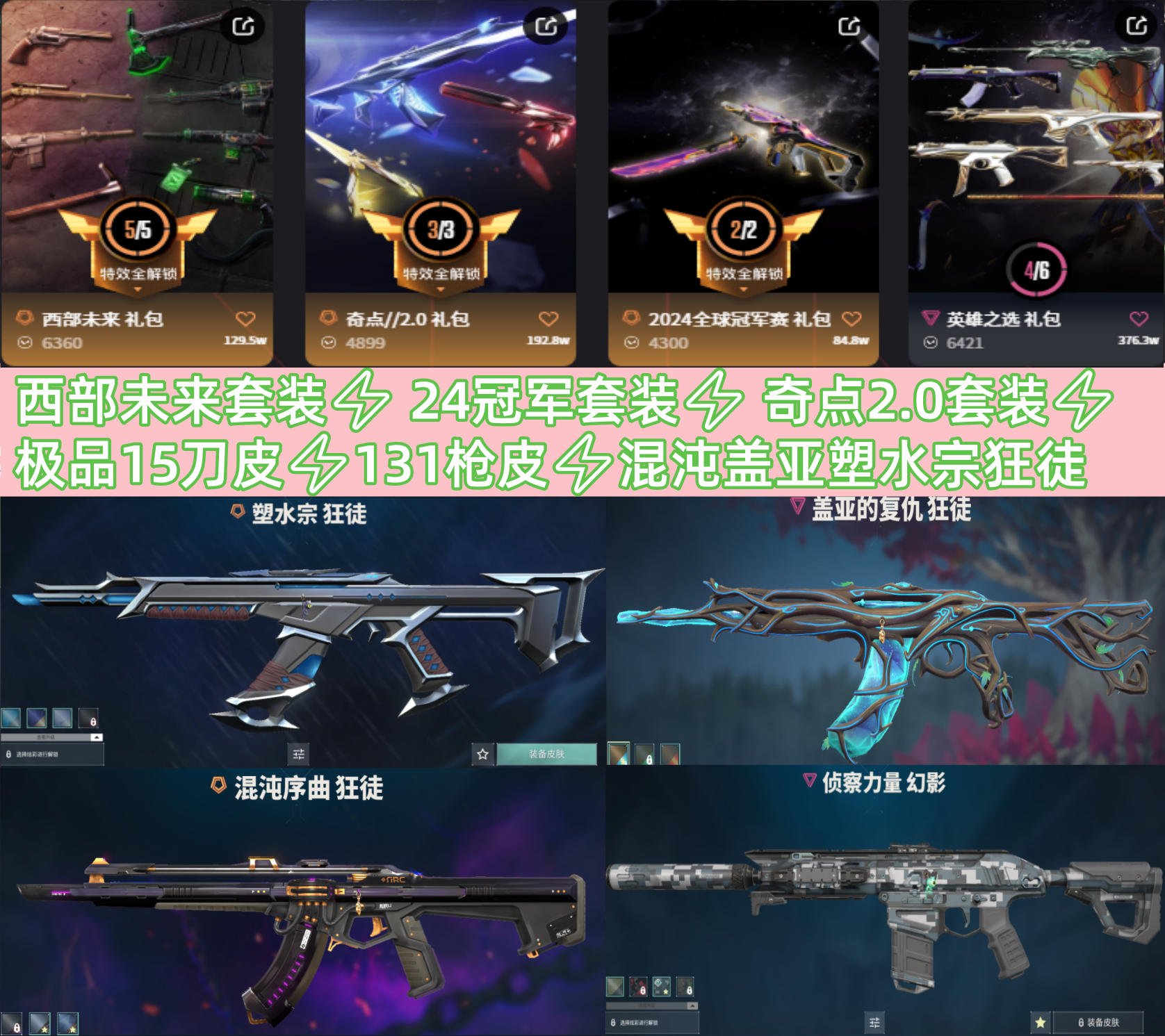 精氪毕业皮齐全✨西部未来套✨24冠军套✨奇点2.0套✨RGX威龙蝴蝶刀混沌盖亚紫金狂徒✨24侦查幻影