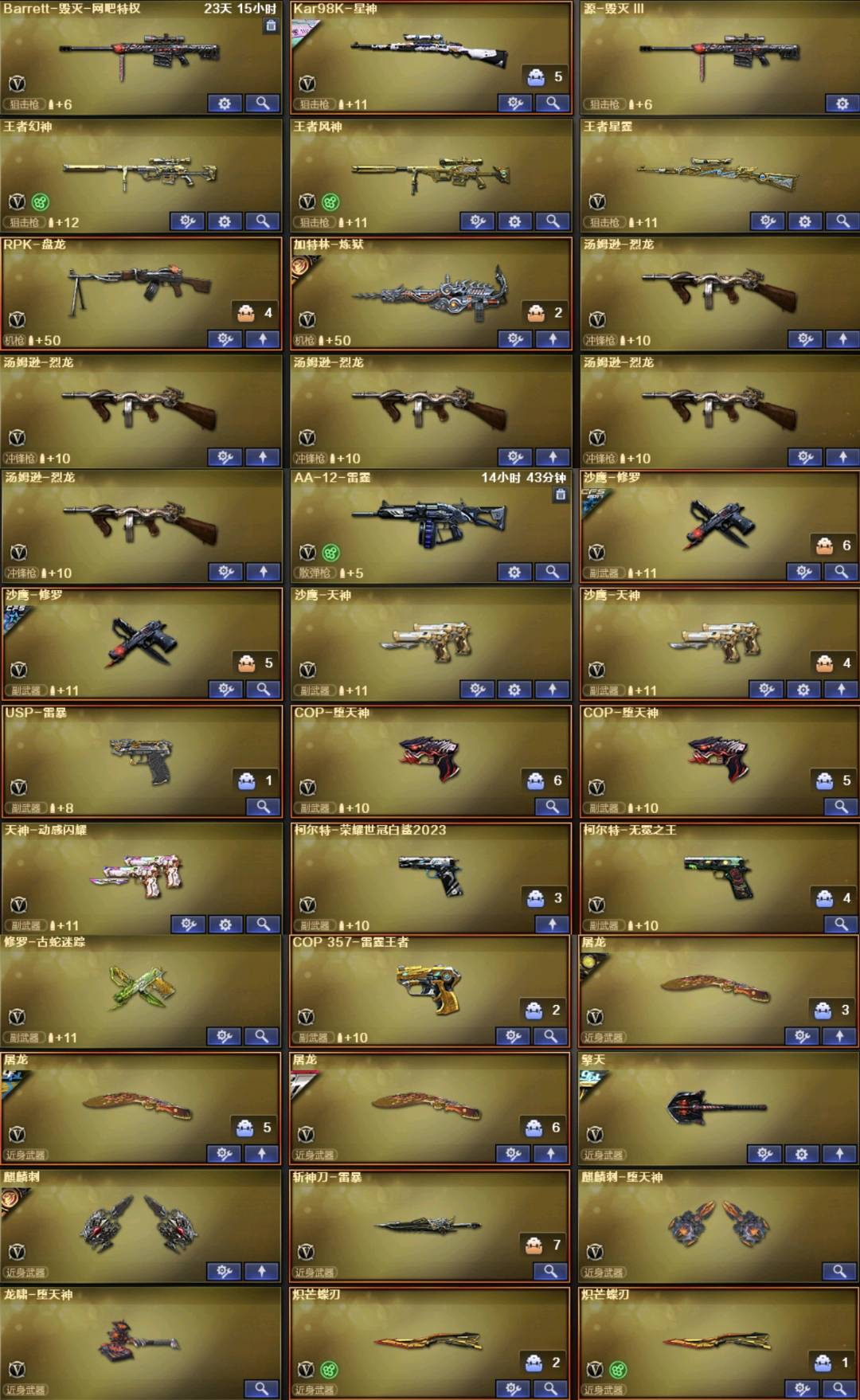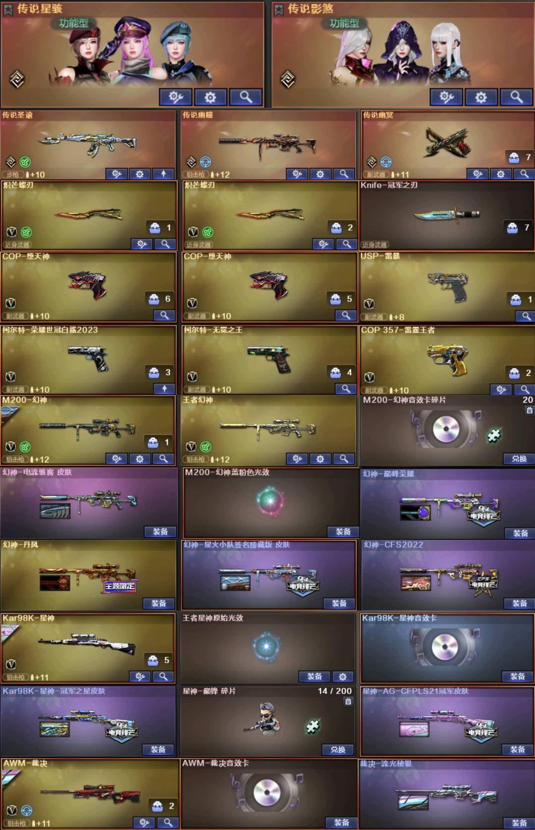。。。。;USP-雷暴,柯尔特-无冕之王,柯尔特-荣耀世冠白鲨2023,传说幽冥,炽芒蝶刃,Knife-冠军之刃,传说影煞,