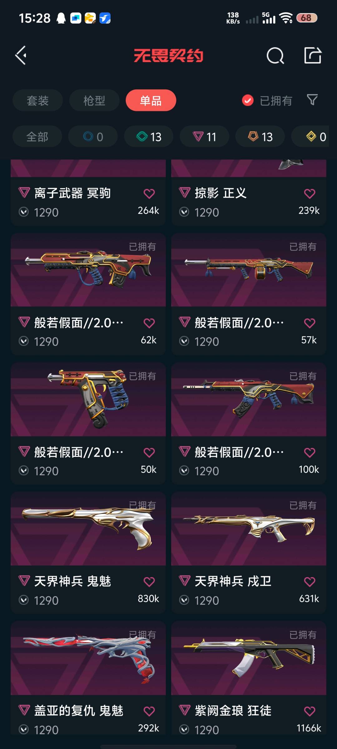 • 传奇数量: 13
