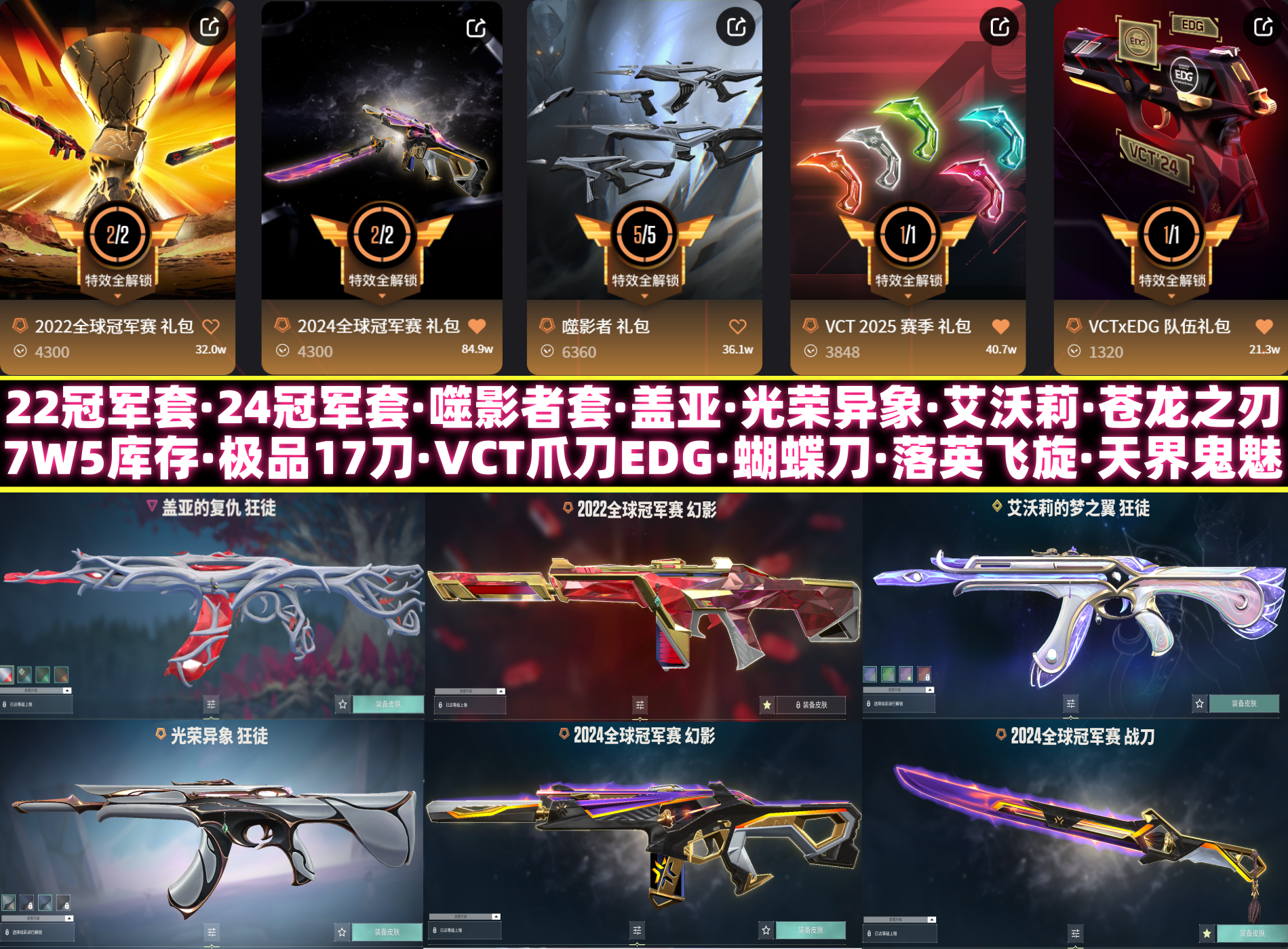 22冠军套24冠军套⚡极品17刀VCT爪刀⚡苍龙之刃⚡战刀⚡蝴蝶刀⚡侦查噬影者套盖亚光荣异象艾沃莉⚡