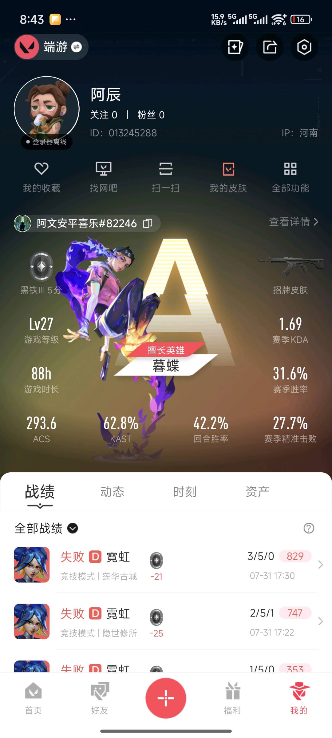 首页 > 租号大厅 > 无畏契约-wegame > wegame/wegame > 【当前段位:黑铁三】无畏契约✅虐菜✅欢迎老板下单虐菜✅感谢支持