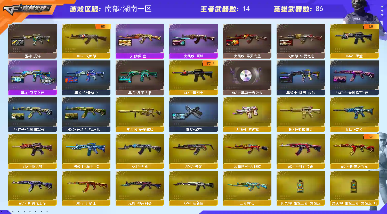 • 游戏区服:穿越火线 / 南部 / 湖南一区