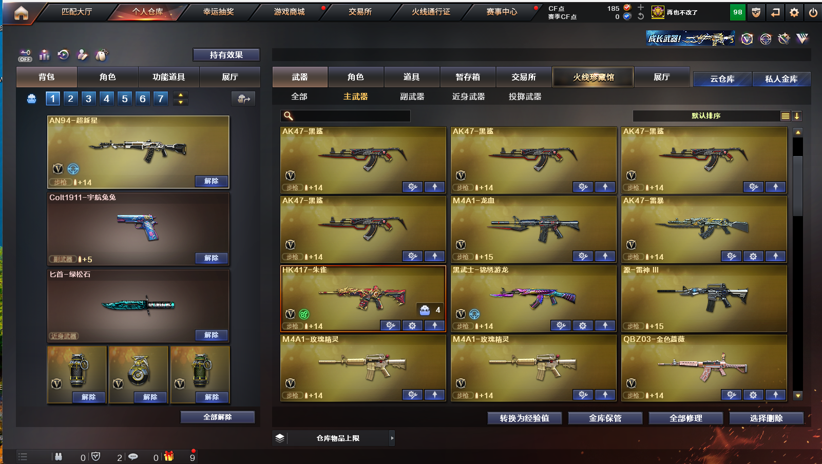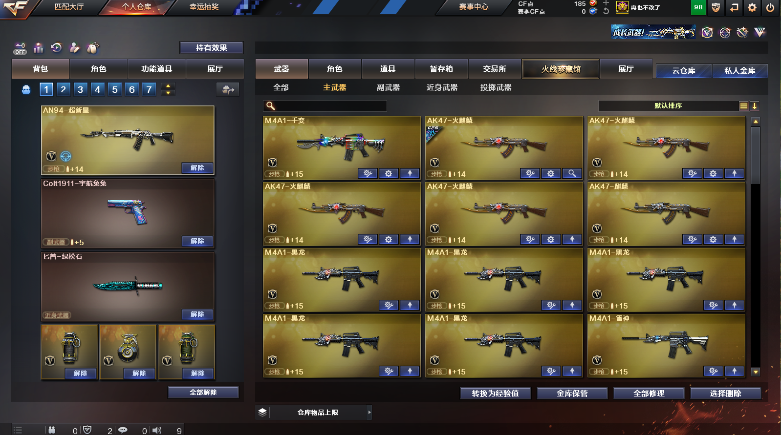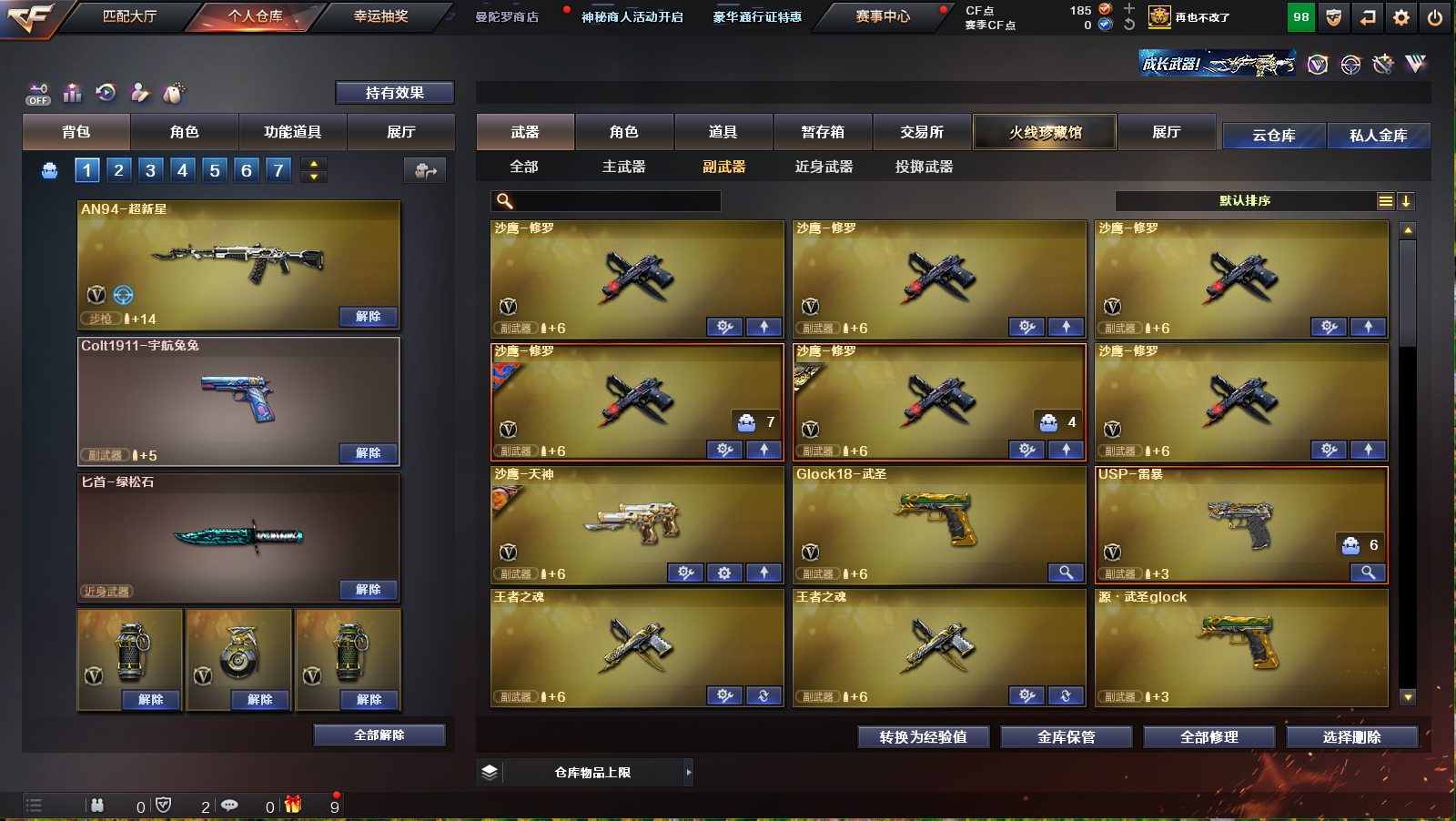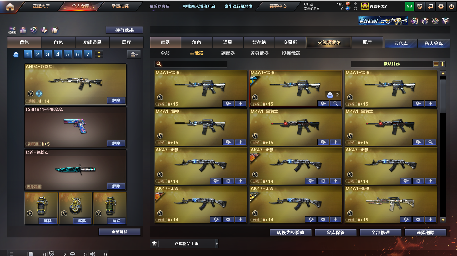 147V双全装✸七烈六盘✸M200幻神✸雷暴7套✸4音效卡✸猫枪✸金色小号;USP-雷暴,RPK-盘龙,QBZ03-金色蔷薇,M200-幻神,
