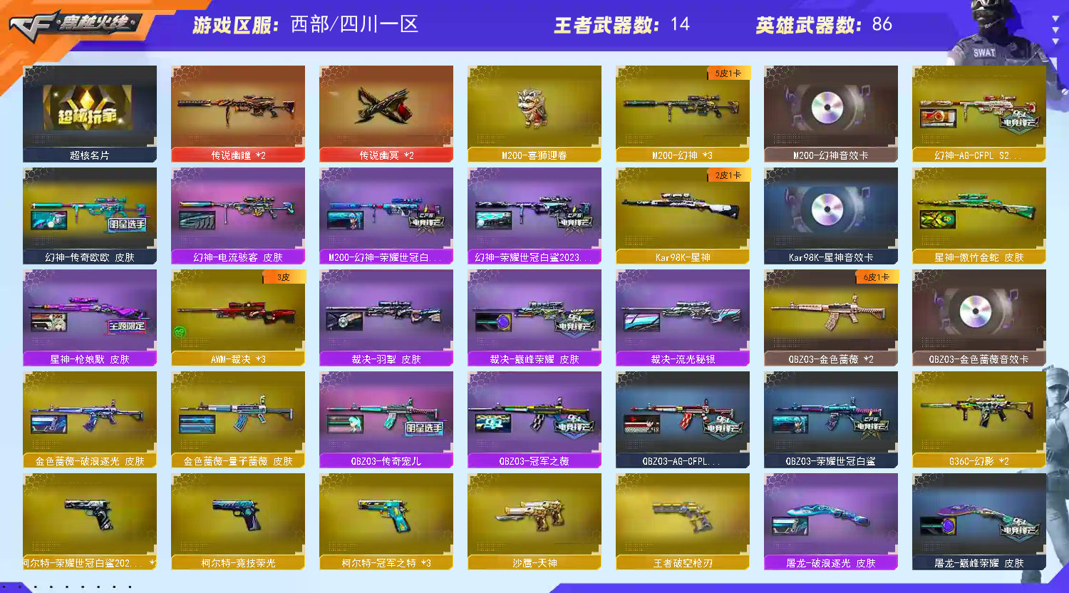 首页 > 租号大厅 > 穿越火线 > 西部/四川一区 > 【西.部】性价比♥幽瞳幽冥3幻神三件套星神三件套♥裁决流光白虎qbz质量皮♥质量柯尔特×7银翼G36