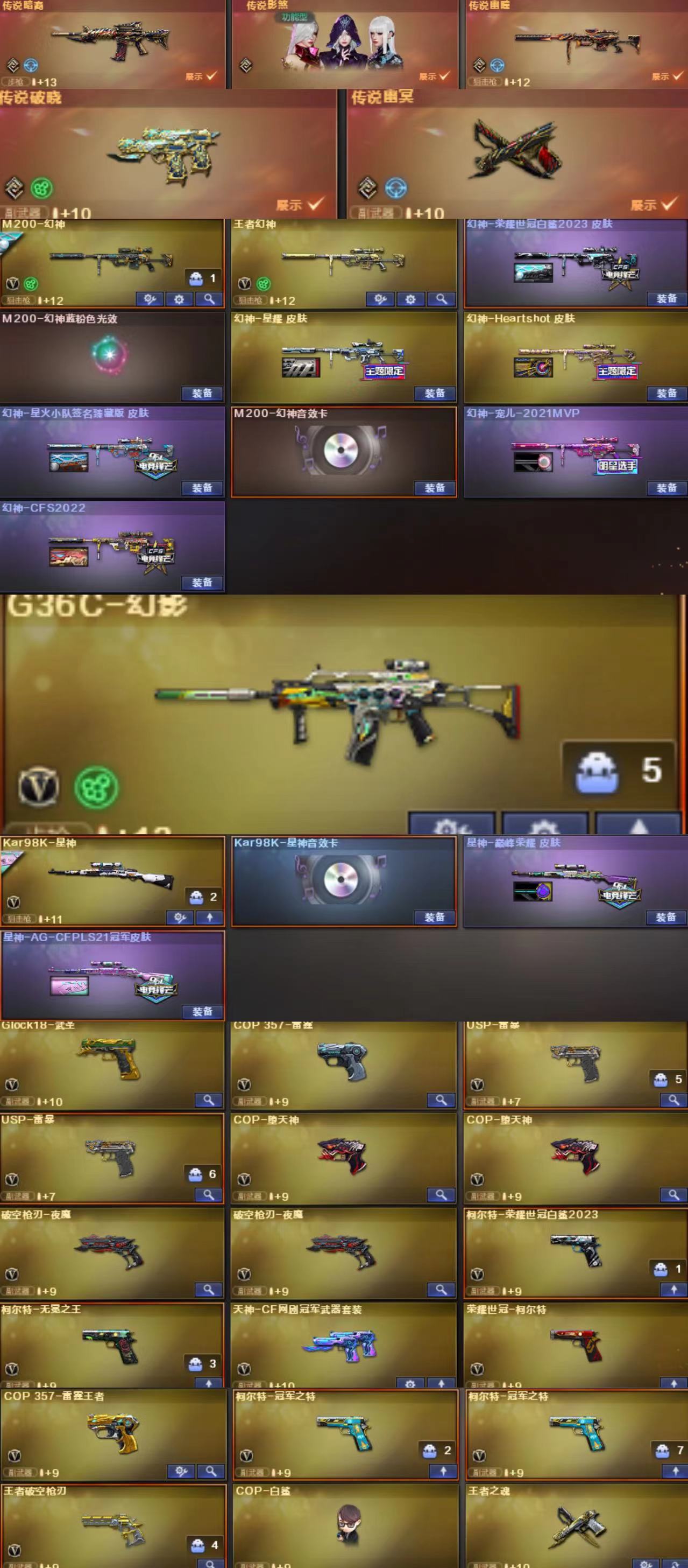 【北.部】233v传说幽瞳+影煞5传说+幻神白鲨2023六皮三件套+星神三件套+G36c幻影蝴蝶刀双