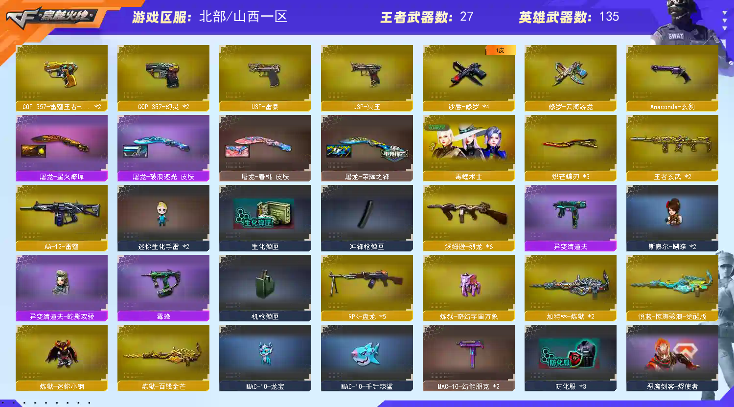 • 游戏区服:穿越火线 / 北部 / 山西一区