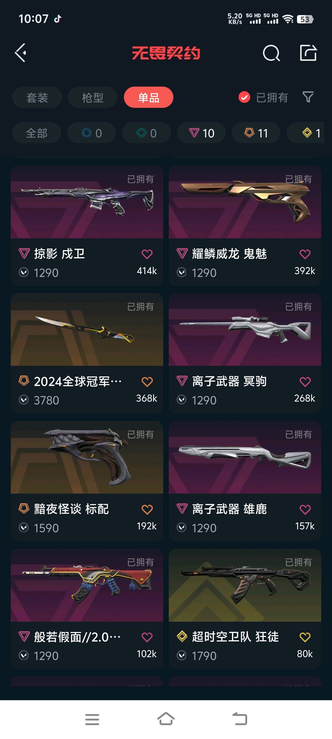 冻结会解冻不要撤单;剥皮小刀,盖亚的复仇 狂徒,掠影 戍卫,堕天遗武 狂徒,混沌序曲 狂徒,2024全球冠军赛 幻影,离子武器 冥驹,
