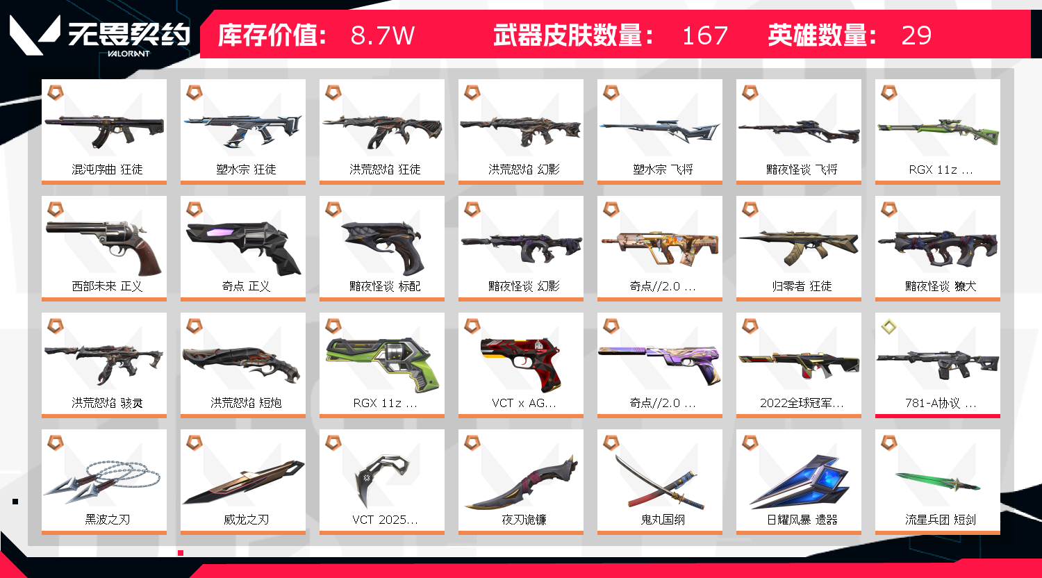 • 武器皮肤数量: 167