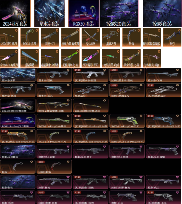 精选17刀⚡显卡爪⚡剥皮刀蝴蝶黑波⚡套装:24冠军塑水显卡掠影2掠影1⚡狂徒盖亚塑水混沌侦查幻影冠军;黑波之刃,剥皮小刀,盖亚的复仇 狂徒,掠影 戍卫,掠影 狂徒,侦察力量 幻影,紫阙金琅 狂徒,