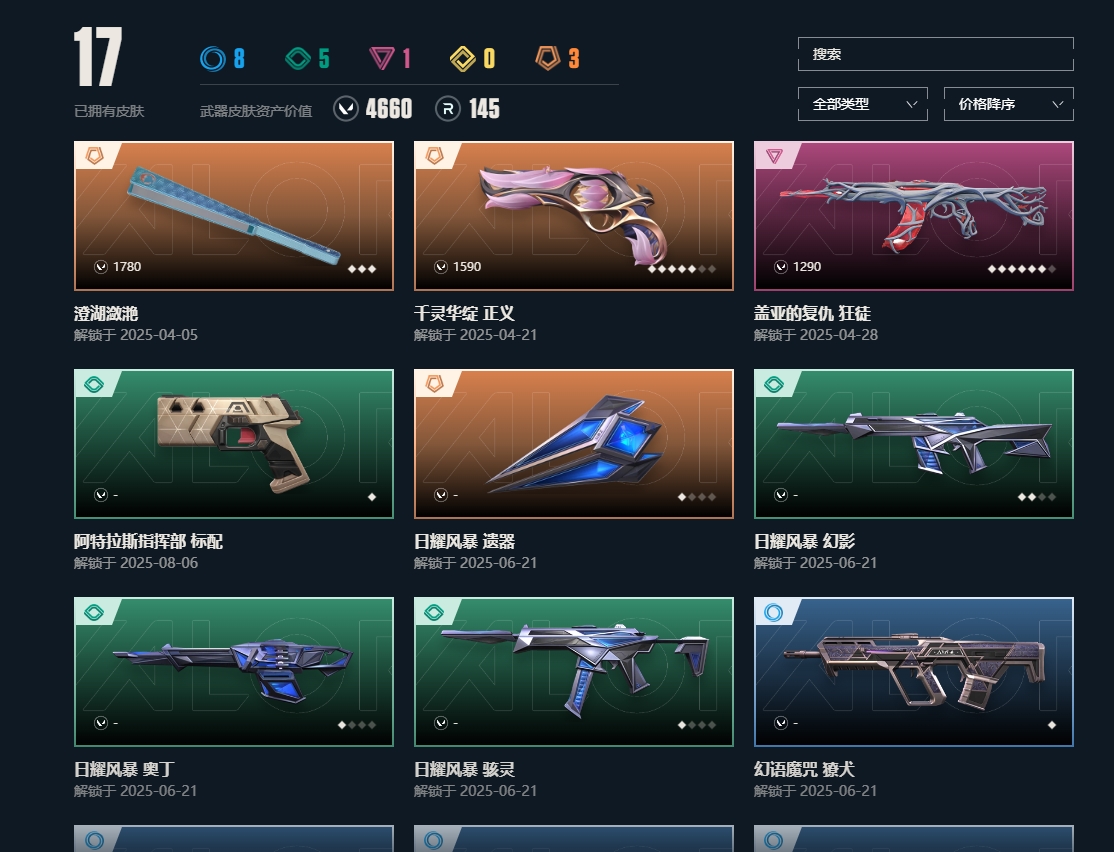 • 武器皮肤数量: 17