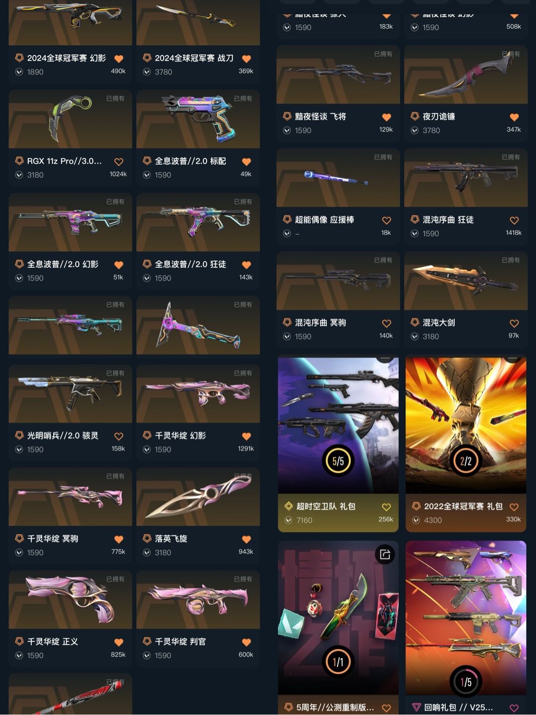 可排❤禁炸鱼❤11W库❤超时空套❤混沌套❤22/24冠军套❤噬影套❤光荣套❤归零波谱2.0套❤黯夜套