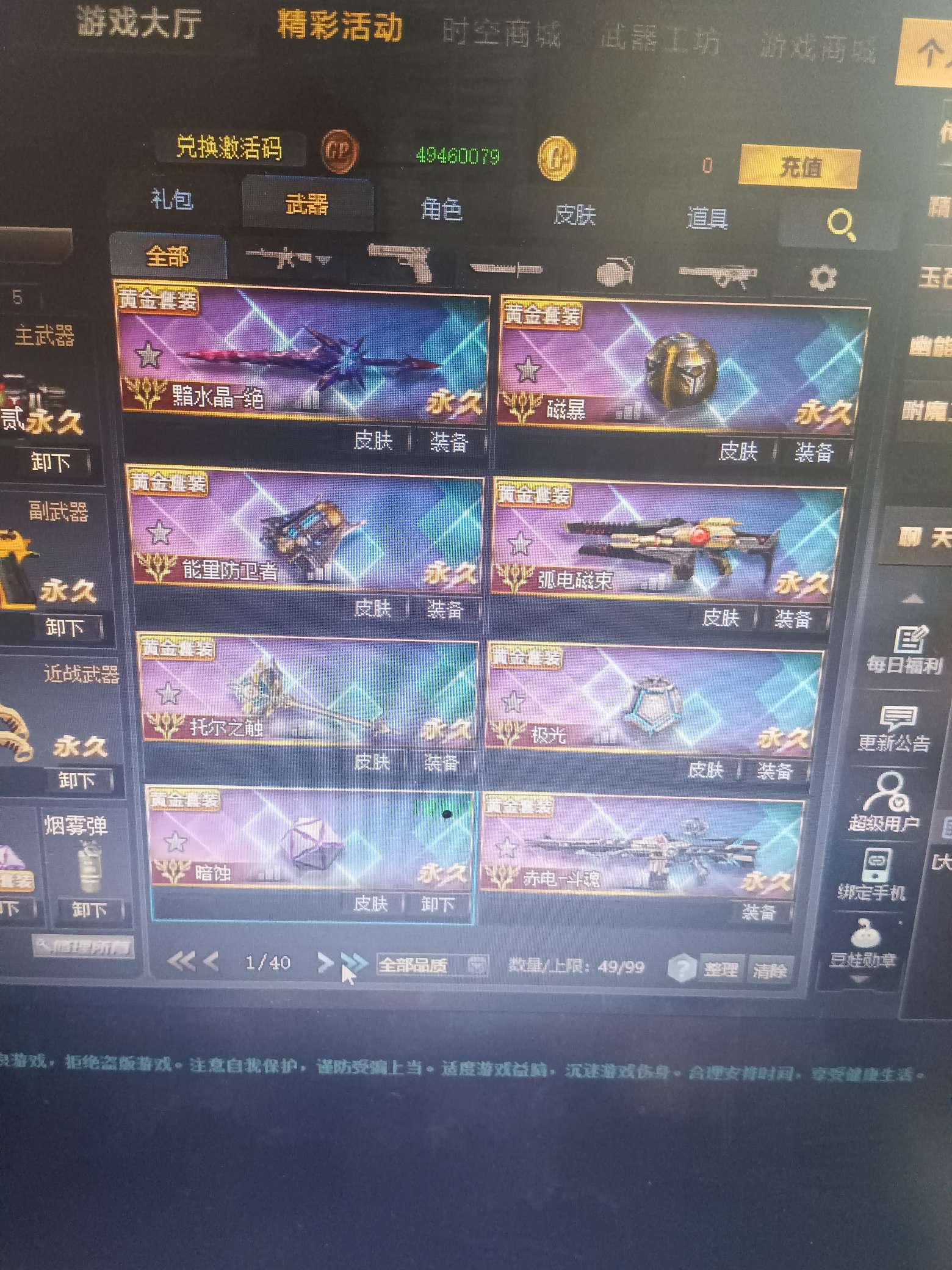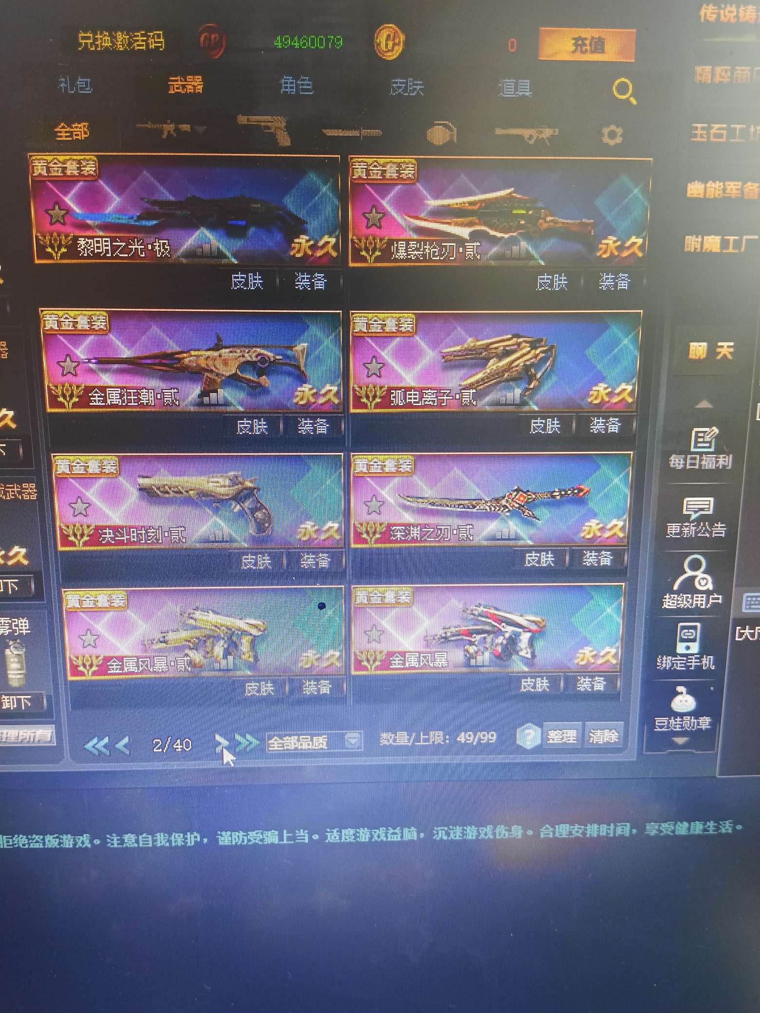 黑猫白猫防摔角色都有 黄金 卓越军火库武器都有,乱斗商店的武器都有,双持加特林,陨铁汉剑这些都有,可以先登录账号看是否满意。满意再租