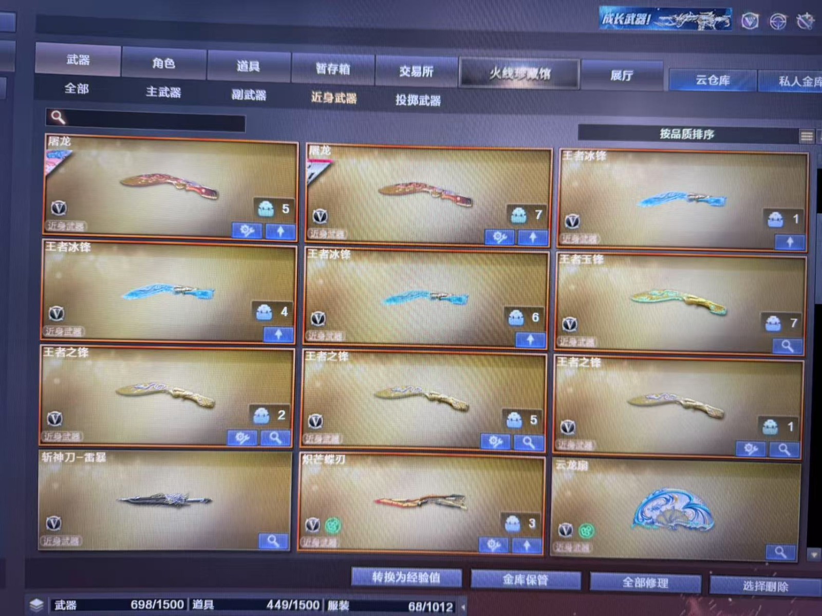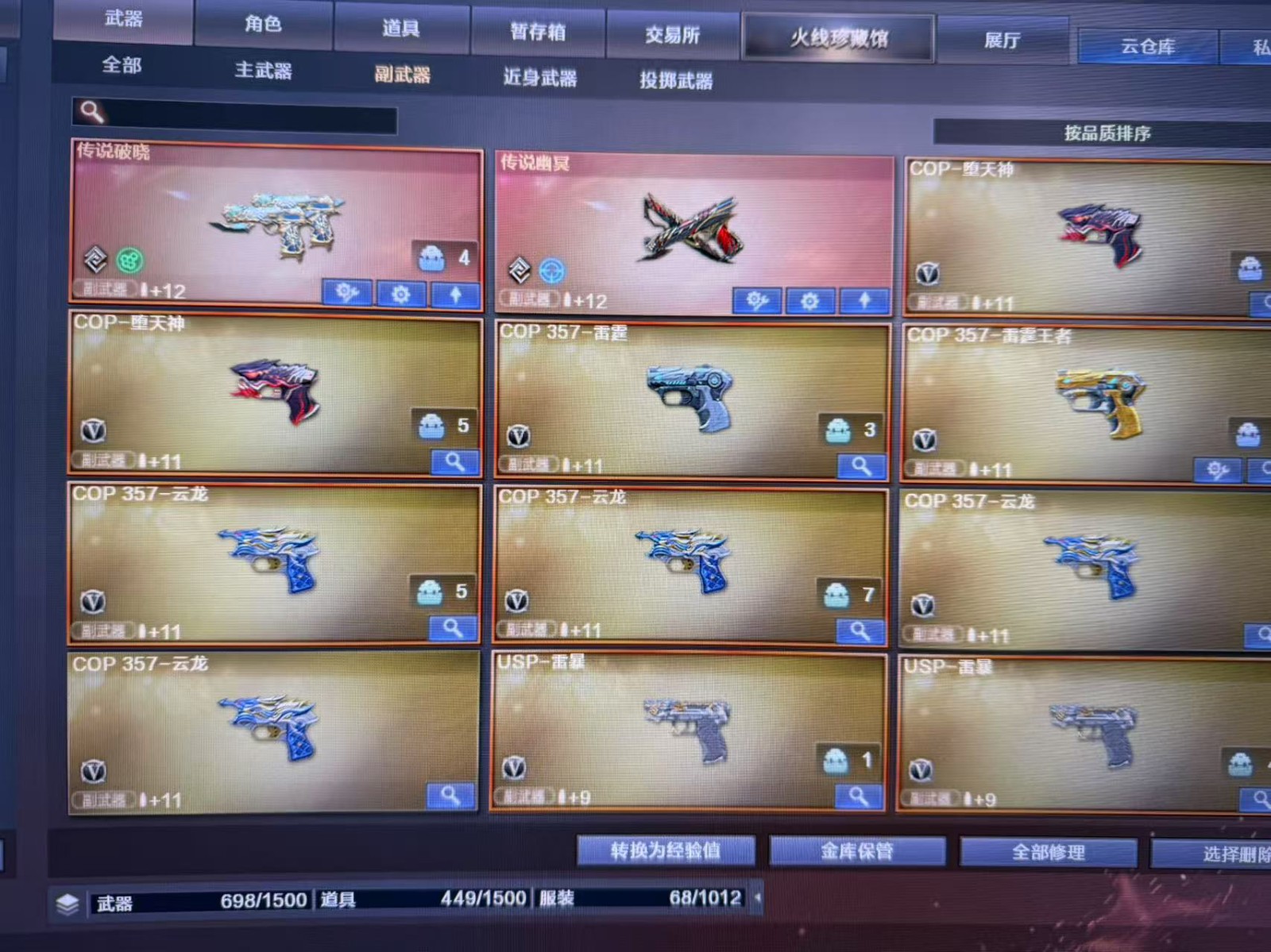 传说角色武器、王者武器、音效卡以及各种近战武器,6烈,套装。;USP-雷暴,柯尔特-无冕之王,USP-雷暴王者,传说幽冥,炽芒蝶刃,传说影煞,传说星骇,