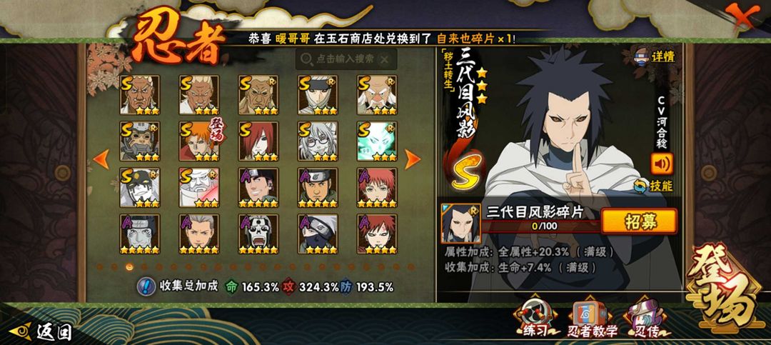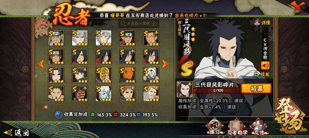 六道带土已秒☀️黑绝五影斑☀️侠隐佐助☀️395全忍者☀️秽土再不斩☀️九喇嘛水门☀️秽土解斑