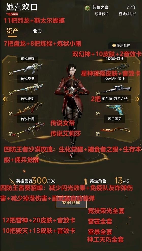 长期租V:CFYyi9999 有优惠 此号已备案10W 开挂必抓 详细看图片 最新活动王者冰封手枪王者usp冥王usp玄豹套装已到 六盘六烈+炼狱小钢+蝴蝶+清道夫蛇影双骄;USP-雷暴,USP-雷暴王者,柯尔特-冠军之特,炽芒蝶刃,Knife-冠军之刃,传说女帝,电竞教官-云悠悠,