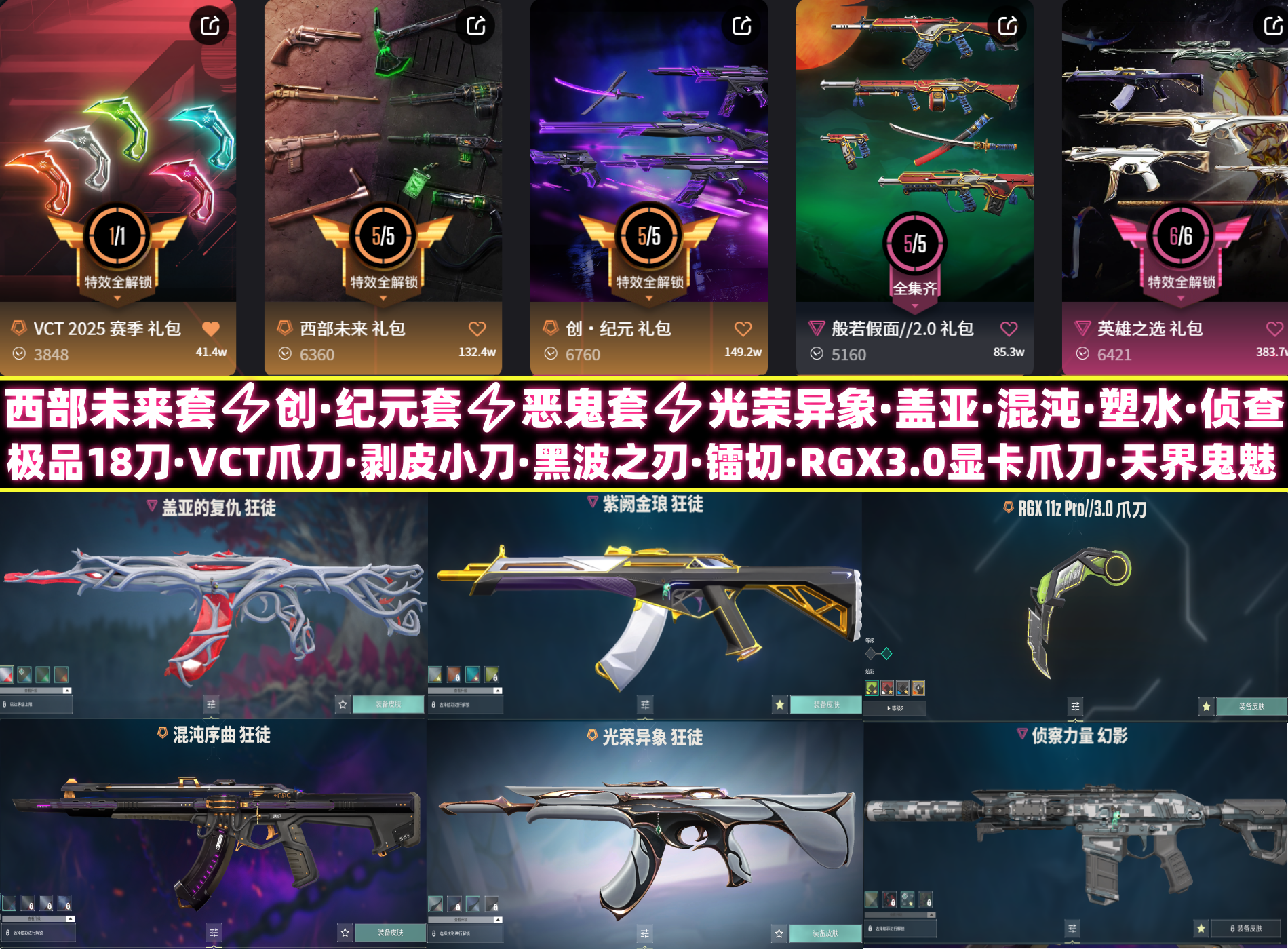 极品18刀VCT爪刀⚡剥皮小刀·黑波之刃·镭切·显卡爪刀⚡天界鬼魅⚡光荣异象⚡盖亚混沌塑水⚡侦查力量