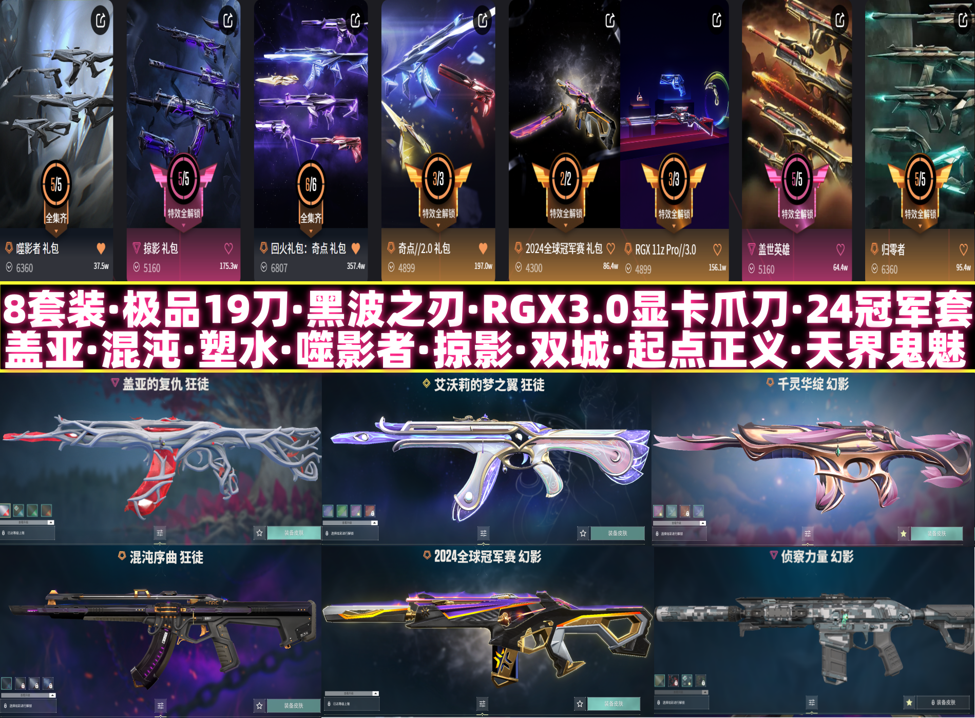 8万库存⚡极品19刀⚡RGX套⚡显卡爪刀⚡战刀⚡黑波之刃⚡24冠军套⚡噬影者套⚡盖亚艾沃莉⚡起点正义