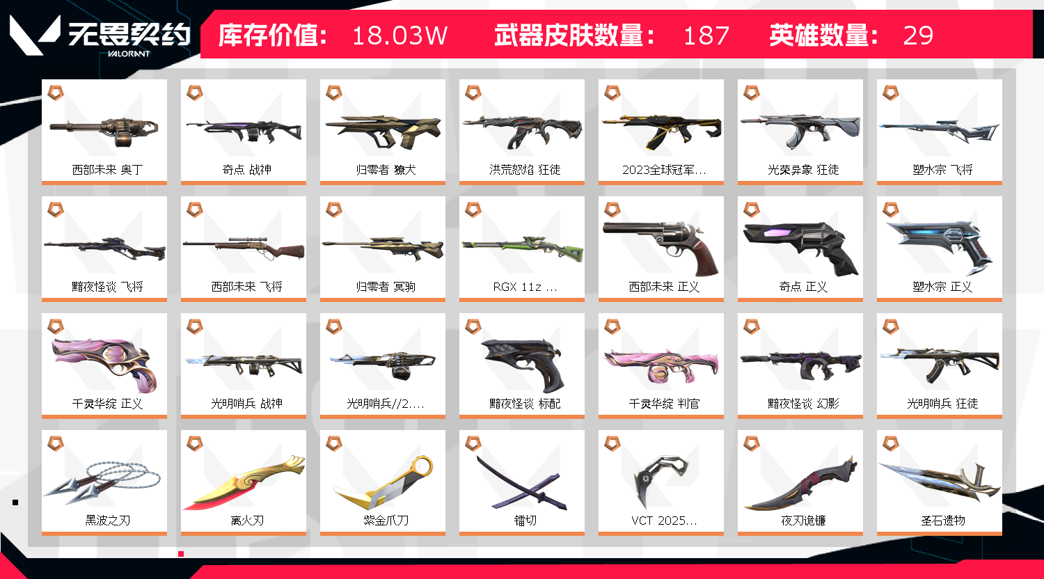 就滴滴滴滴;西部未来 奥丁,奇点 战神,黑波之刃,离火刃,紫金爪刀,镭切,VCT 2025 爪刀,