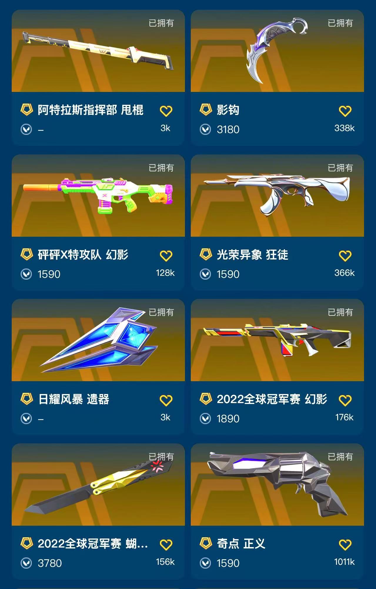 冻结秒解✨可排✨2022冠军套✨掠影2.0套装✨艾沃莉狂徒✨光荣异象狂徒✨影钩✨