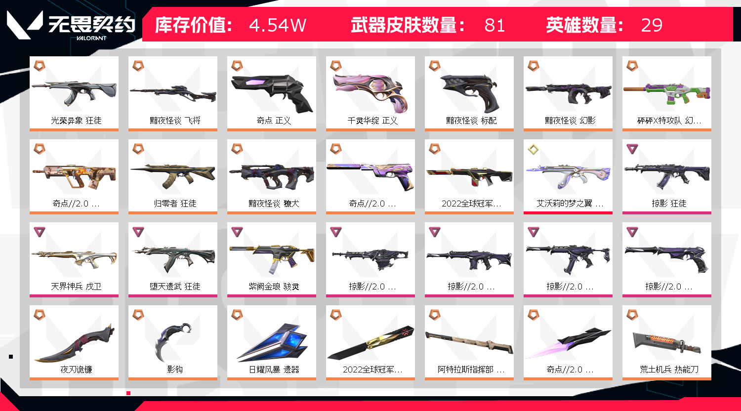 • 皮肤资产价值: 45410