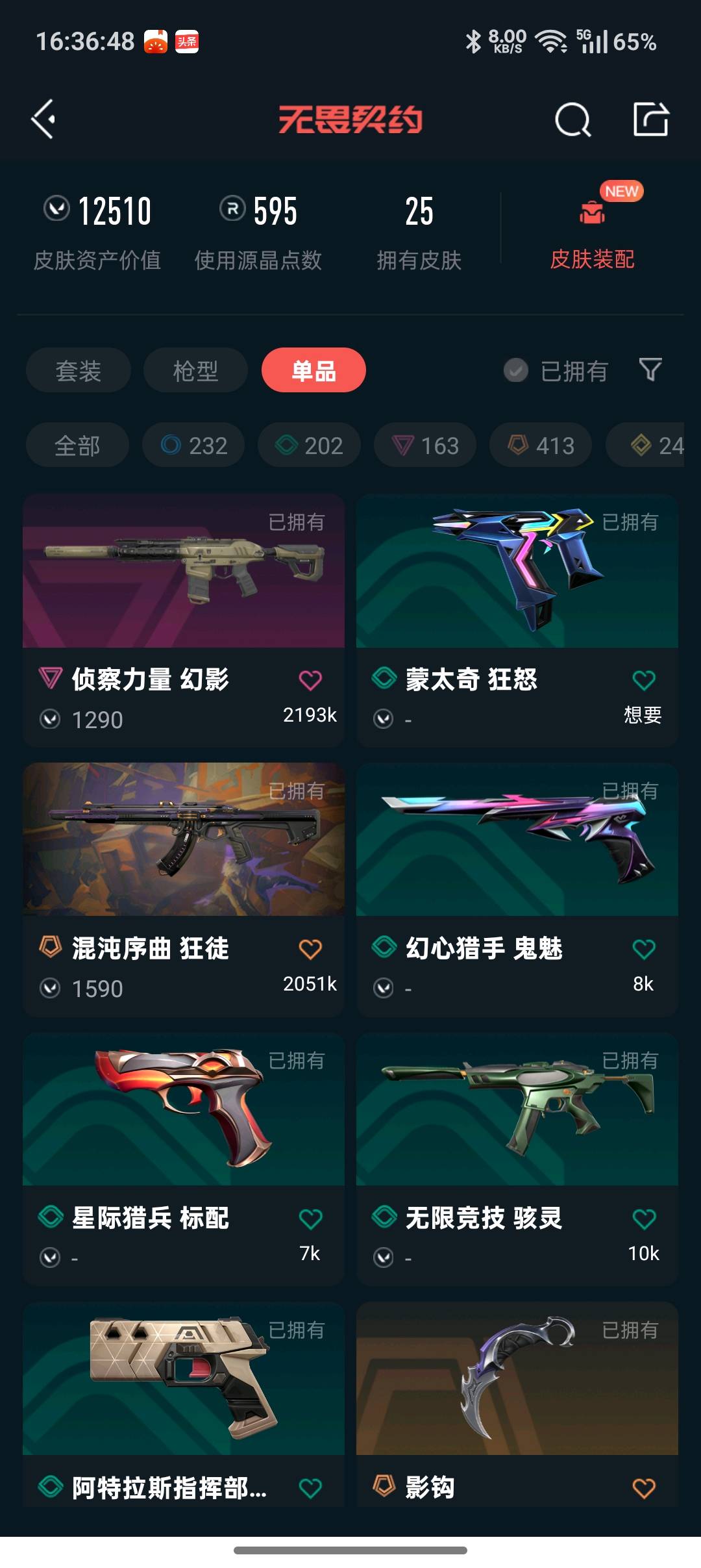 • 皮肤资产价值: 12510