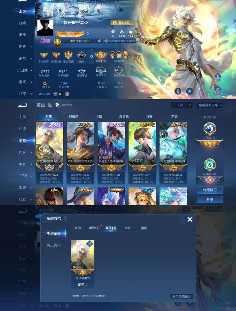 立即租号首页 > 租号大厅 > 王者荣耀 > 标题写明区服/QQ > 【V8 316皮】10月在榜省标李白❤️历史小国标李白❤️分够可巅峰❤️无双碎月剑心❤️典藏鸣剑曳影