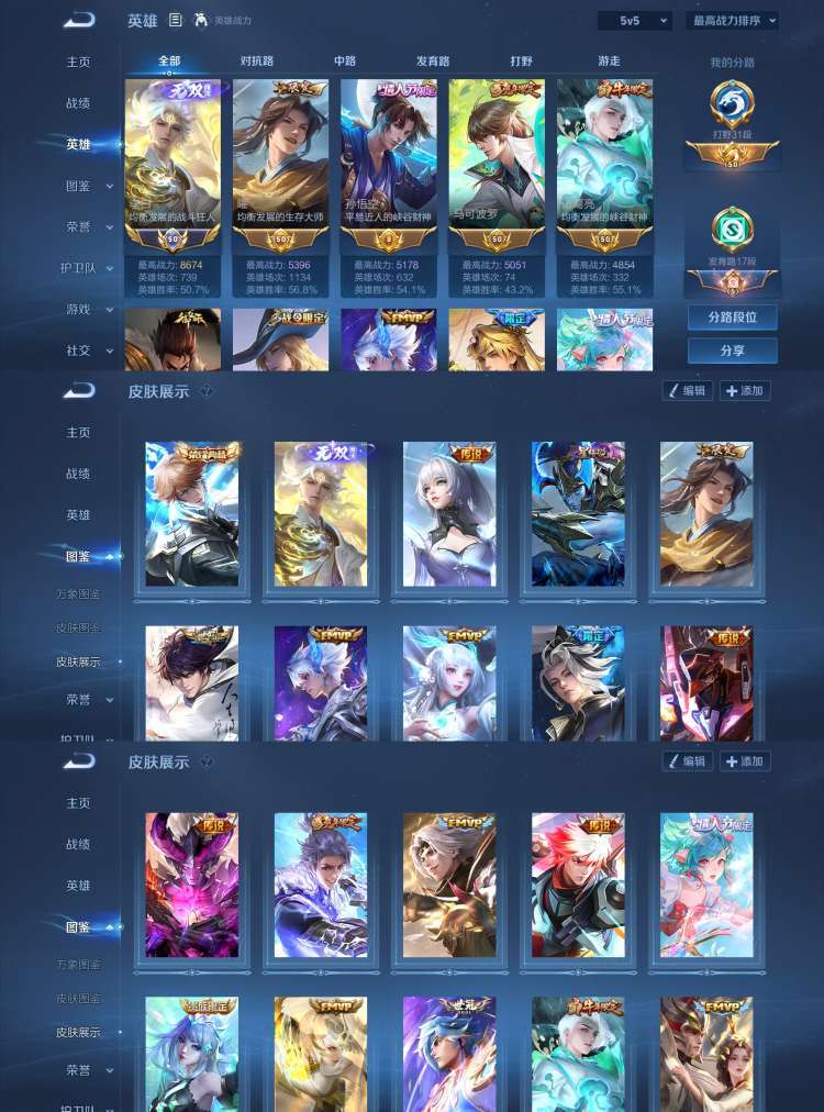 顶级V10❤️516满皮国服瑶妹省标多❤️14荣耀水晶龙年全限定❤️8星元妲己武则天无双皮❤️妹子号请爱惜多天幕+按键个性签名