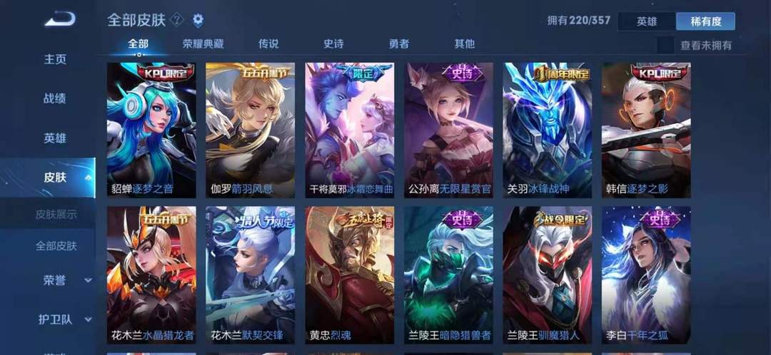 女生号 贵10 多皮肤多传说 别拿那些空号v10来比 要看性价比 貂蝉武则天夏侯惇孙悟空李白鲁班小乔荣耀水晶 妲己九尾无双皮肤 80个传说 473皮肤