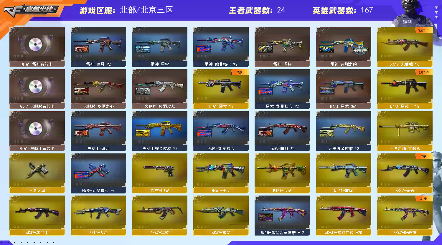 • 游戏区服:穿越火线 / 北部 / 北京三区