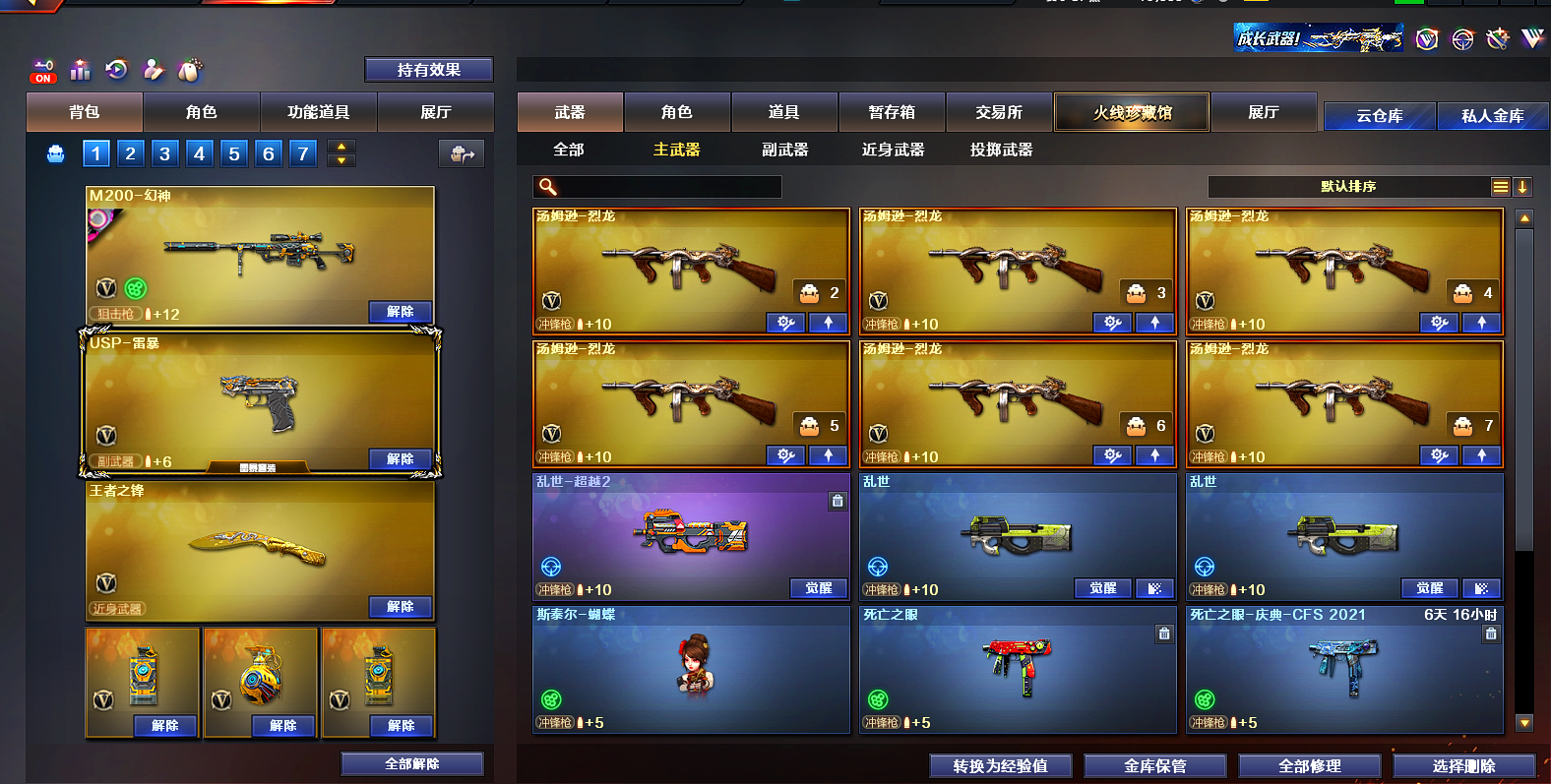 雷暴整套|雷神10皮肤|主流枪械齐全都带皮肤;USP-雷暴,荣耀世冠-柯尔特,QBZ03-金色蔷薇,M200-幻神,