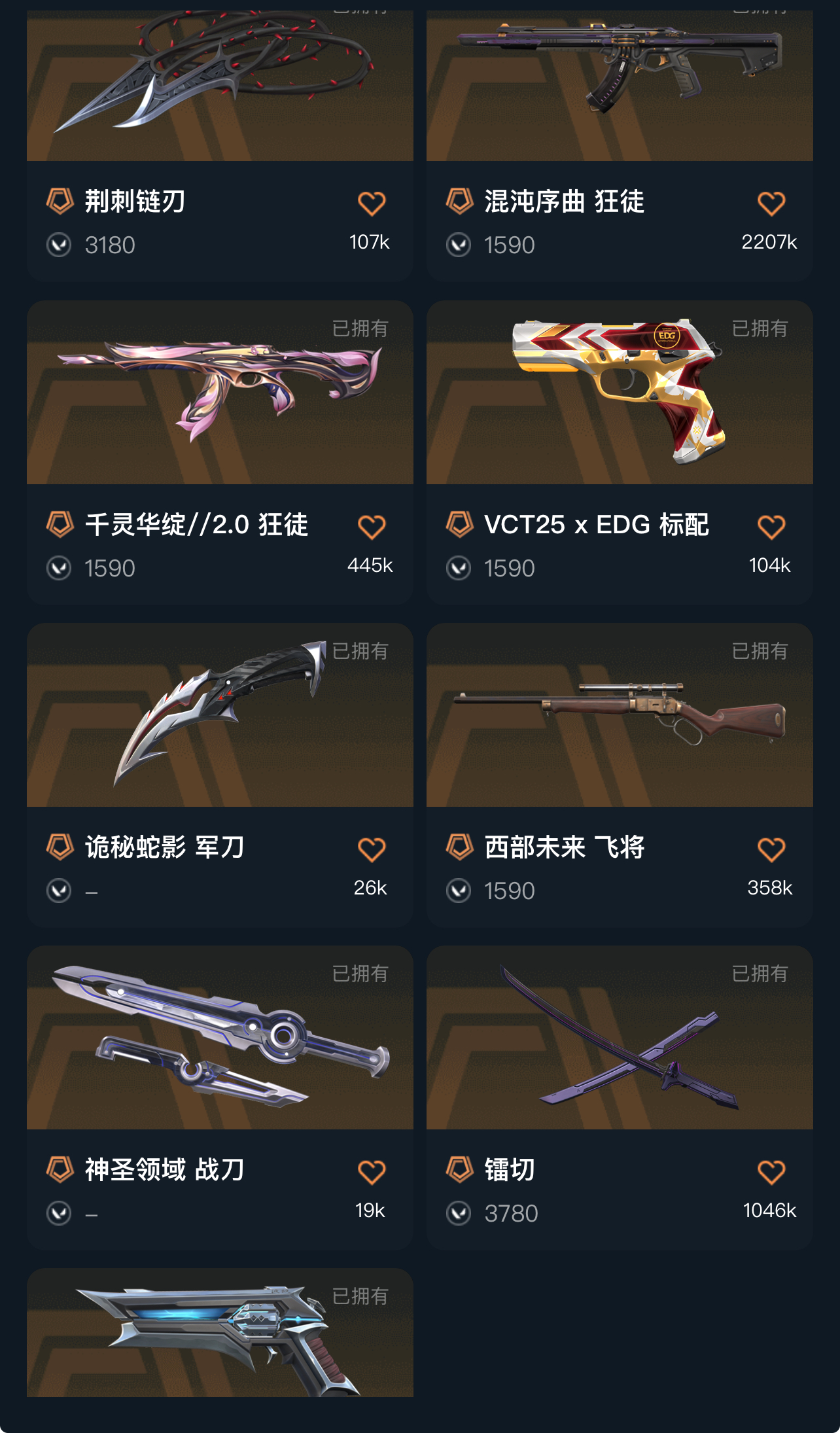 ak混沌盖亚紫金掠夺莲花小猫 侦查幻影 雷切玫瑰刀 掠夺戍卫 堕天大狙 塑水正义西部鸟炮 EDG标配