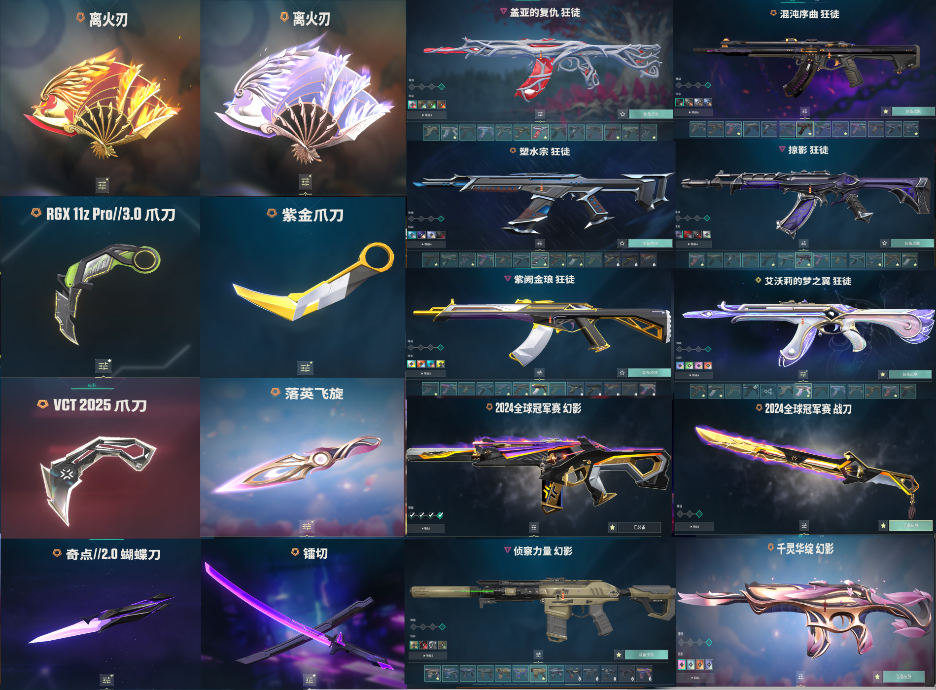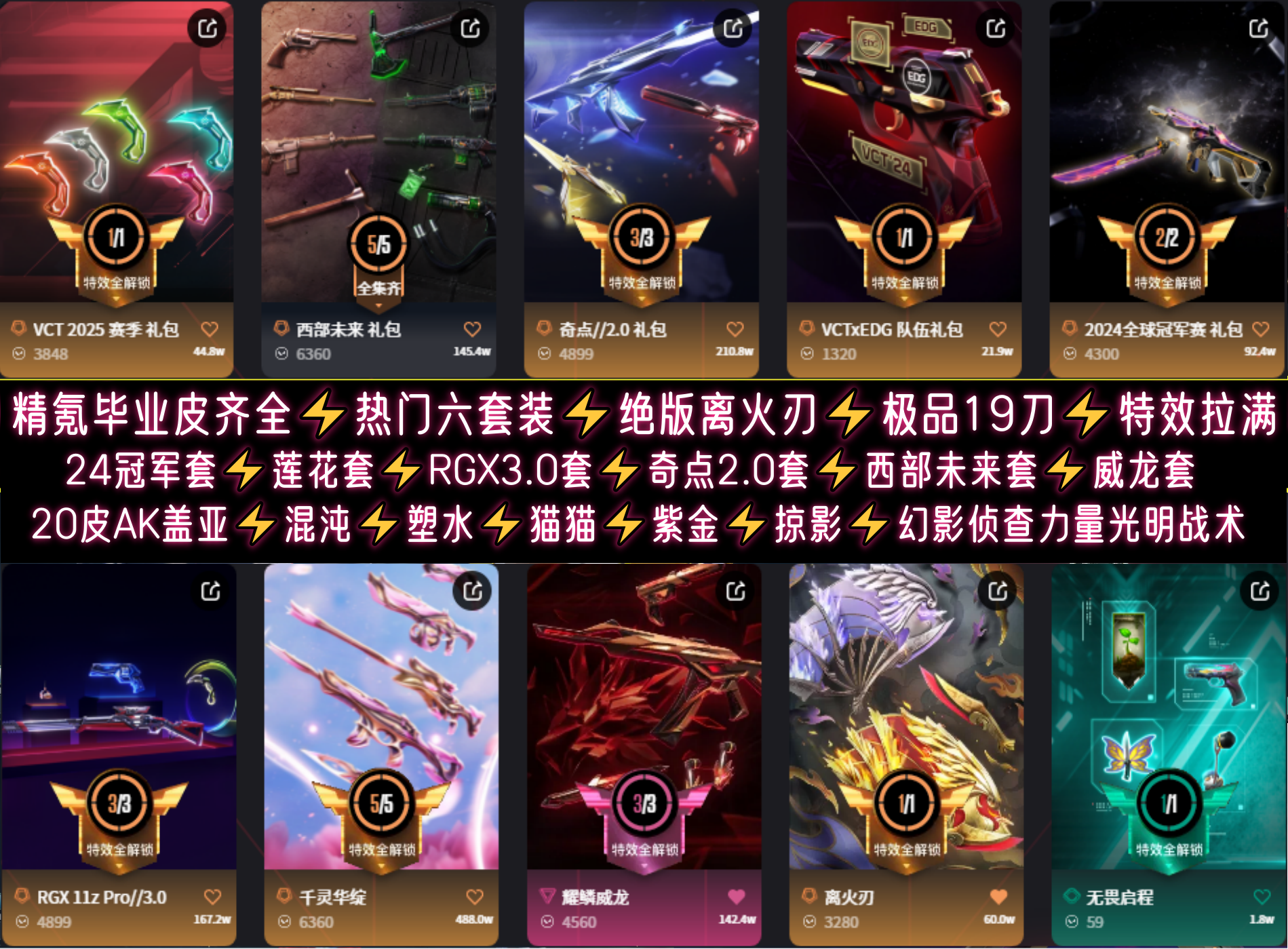 精氪神中神毕业特效拉满极品19刀⚡离火扇RGX紫金爪VCT爪⚡盖亚混沌塑水猫猫AK⚡24冠军侦查幻影
