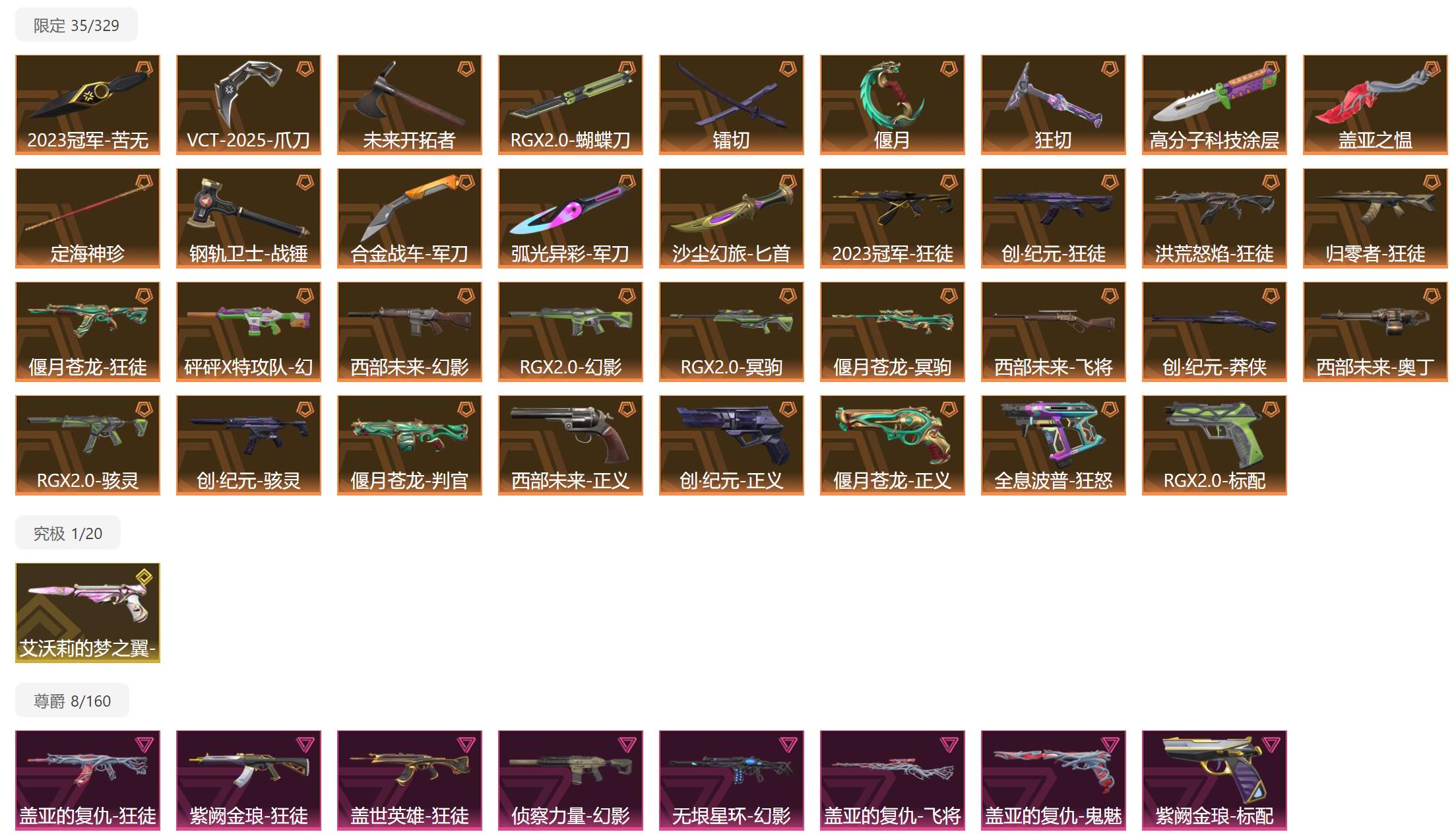 23冠军套✅特效拉满单买精品✅镭切VCT爪刀RGX20套✅盖亚紫金流脓侦查力量✅偃月苍龙套✅西部套✅