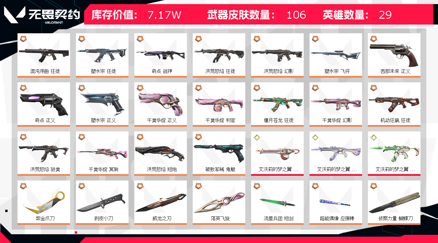 首页 > 租号大厅 > 无畏契约-wegame > wegame/wegame > 7w库存 43 把特效皮 热门ak 热门刀皮