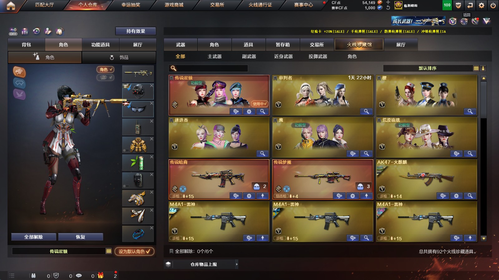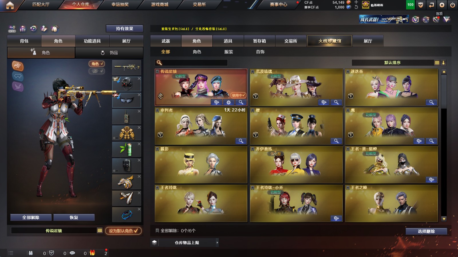 3传说星骇梦魇暗裔🔥王风竞技荣光 双白虎🔥6烈 热门副手🔥挑战武器 4防角色;USP-雷暴,传说星骇,QBZ03-金色蔷薇,Scar Light-白虎,传说暗裔,