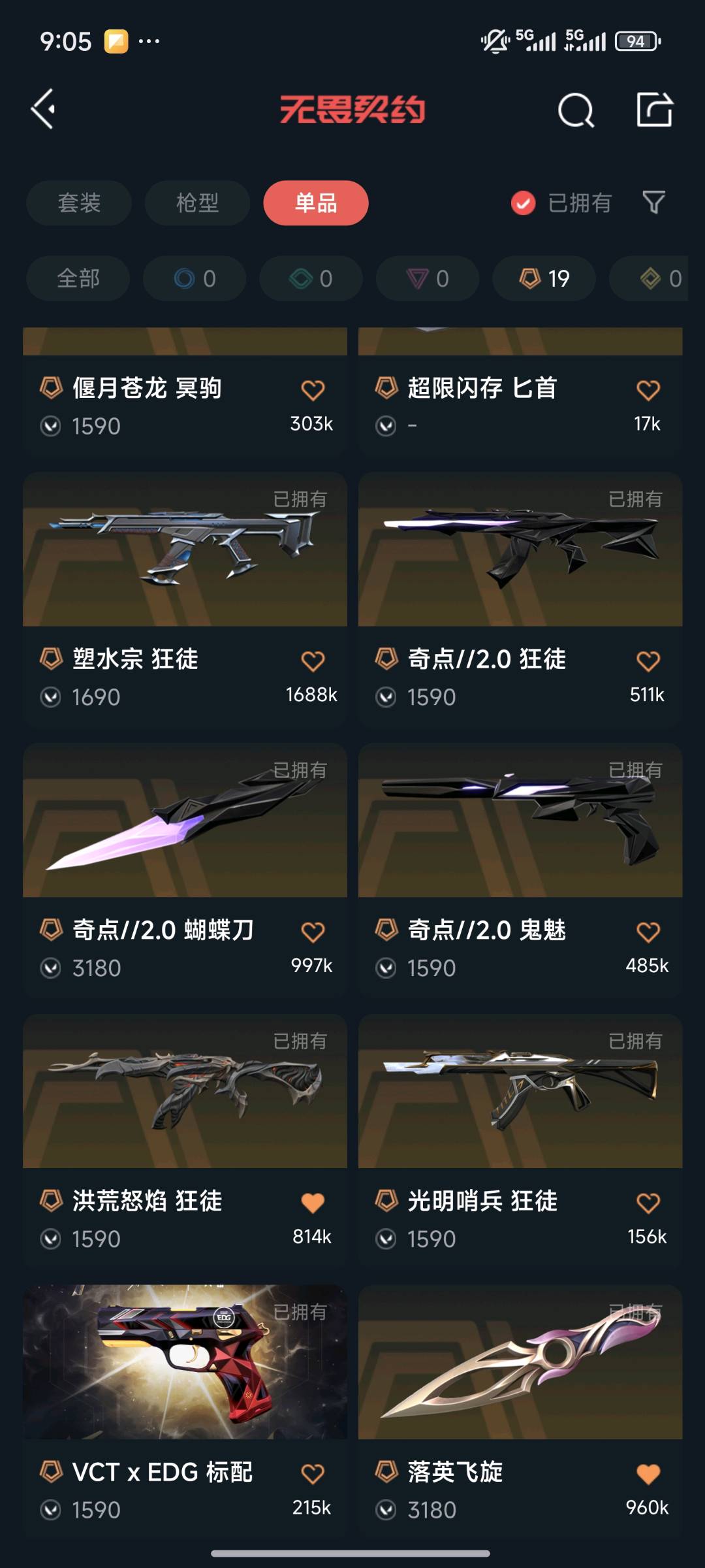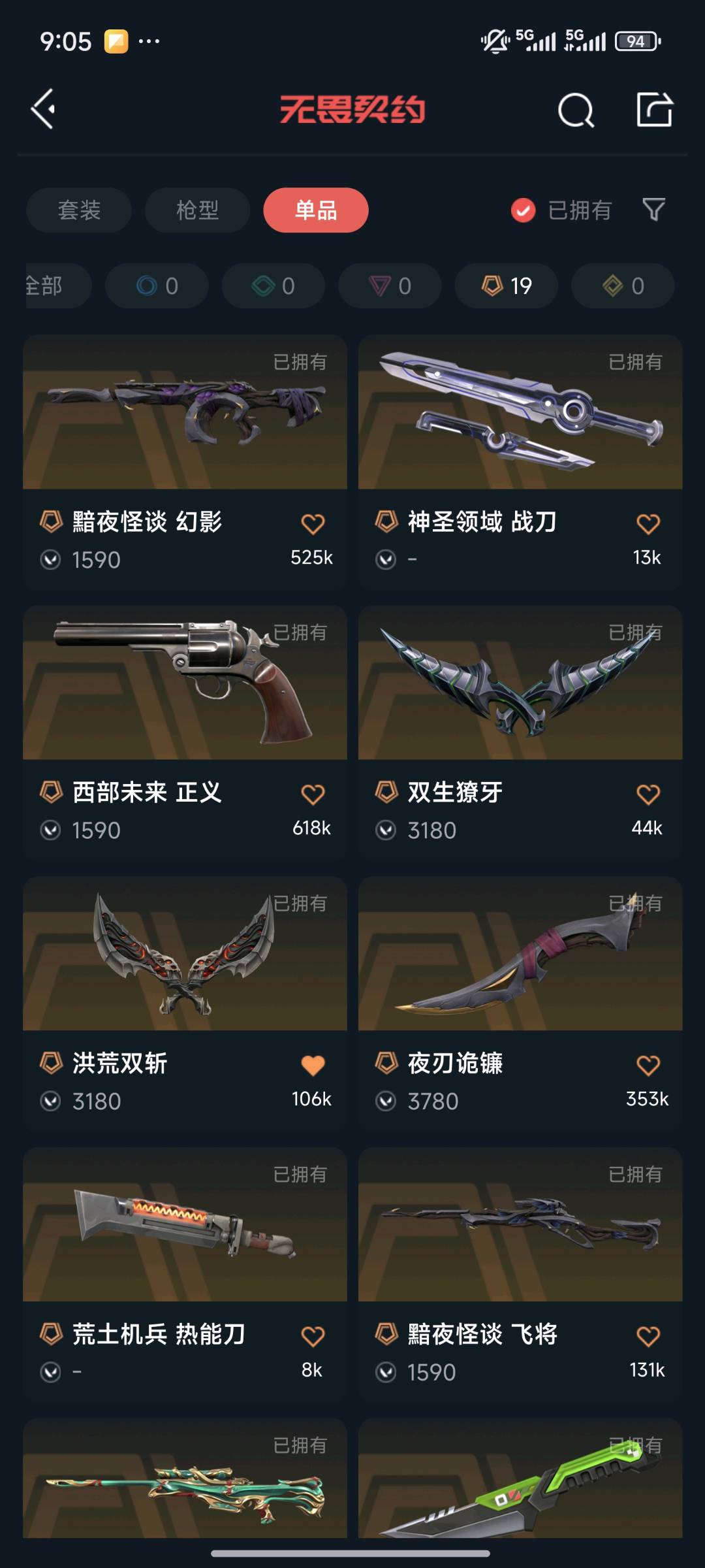 • 传奇数量: 19