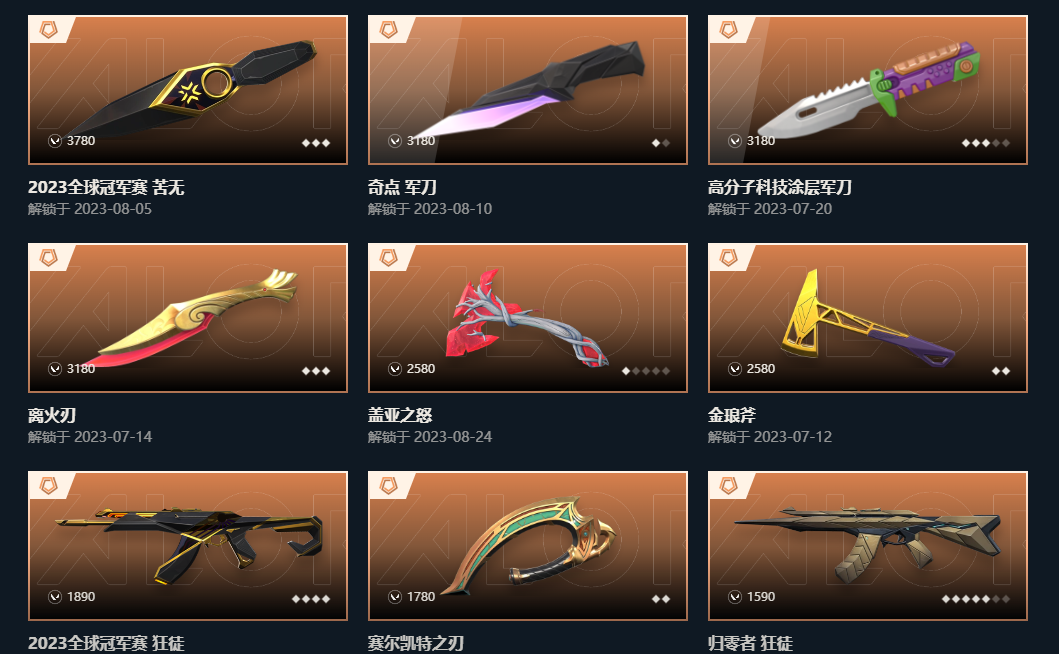 冻结秒解挂机拉黑💗离火刃💗23冠军套💗奇点套💗盖亚套💗砰砰特工队套💗紫金套💗神罚小刀