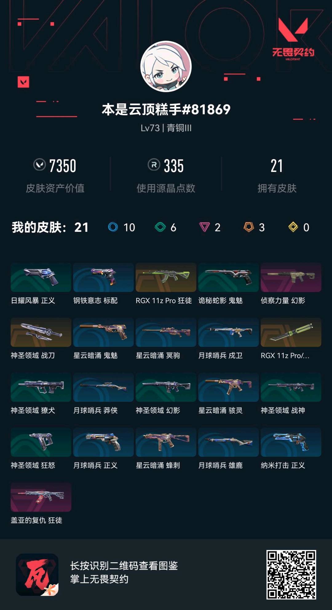 • 游戏区服:无畏契约-wegame / wegame / wegame