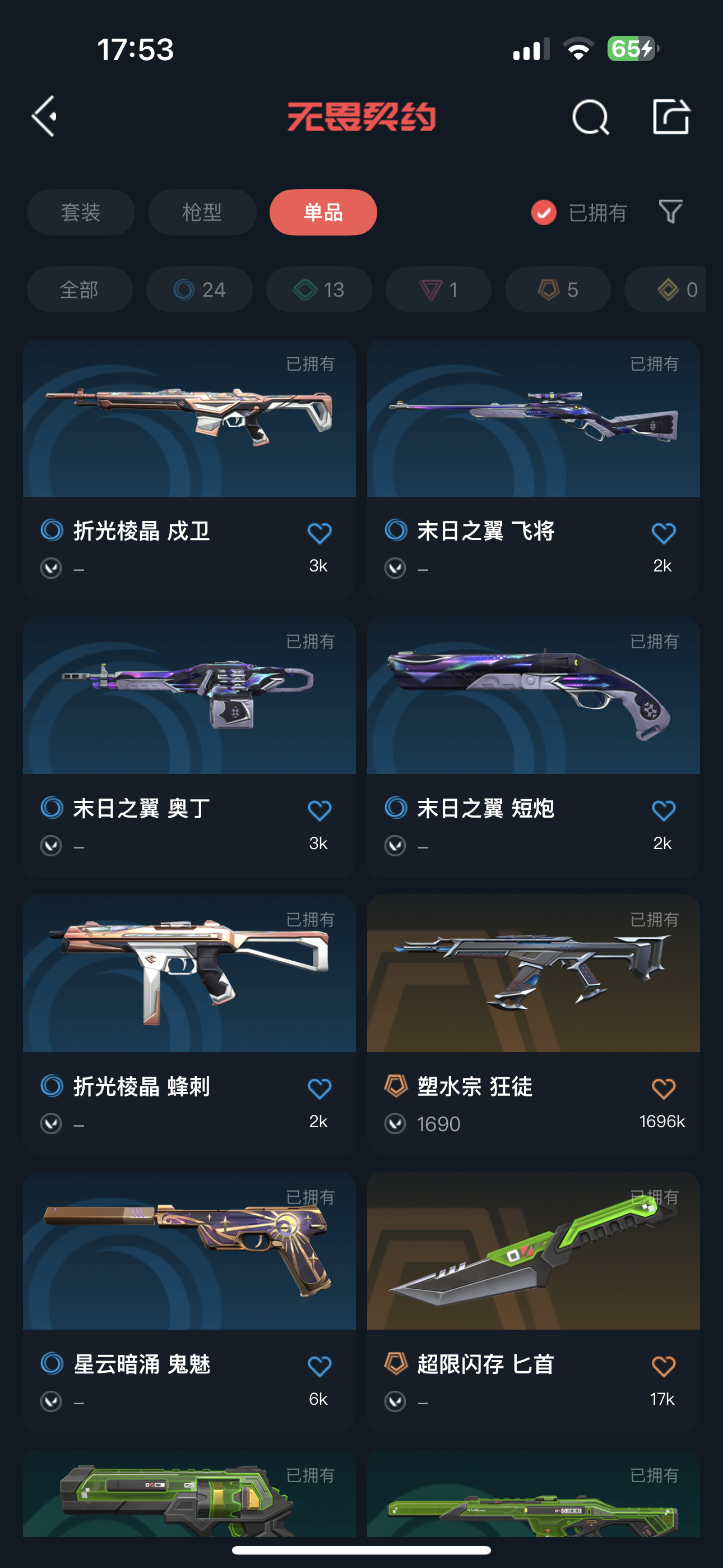 首页 > 租号大厅 > 无畏契约-wegame > wegame/wegame > 看看我的呗!女瓦小号 皮肤多盘盘多 塑水宗 威力 显卡爪刀