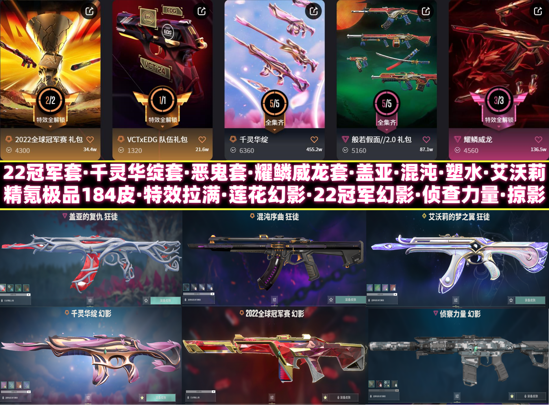 精氪极品184皮✅特效拉满✅22冠军套✅莲花套✅威龙套✅盖亚混沌侦查力量掠影流脓✅落英飞旋✅威龙之刃