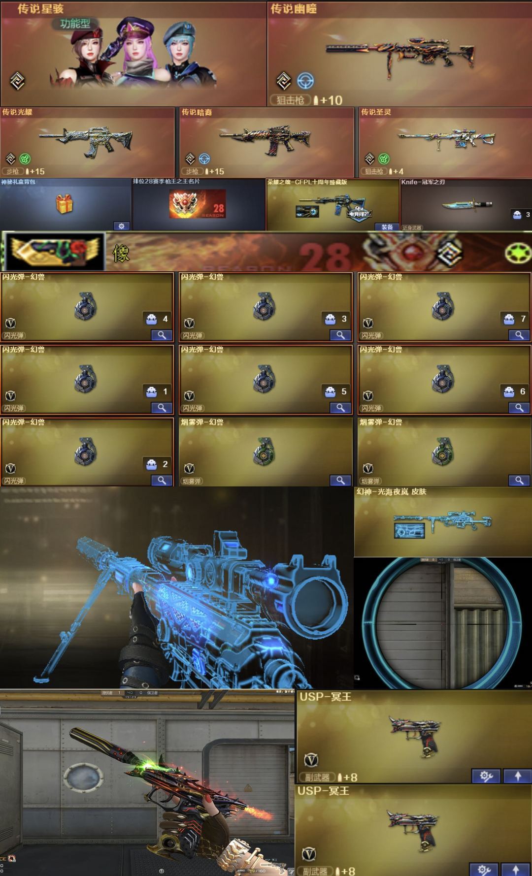 念旧QBZ/EP世冠套/单字id光海夜岚7幻兽幽瞳冥王×2幻神16皮裁决巅峰带卡28−29名片满音效