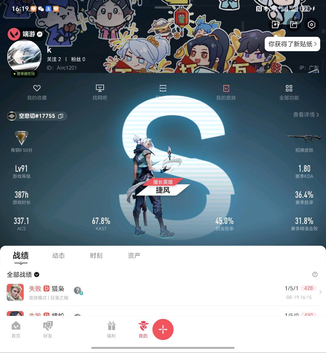 • 游戏区服:无畏契约-wegame / wegame / wegame