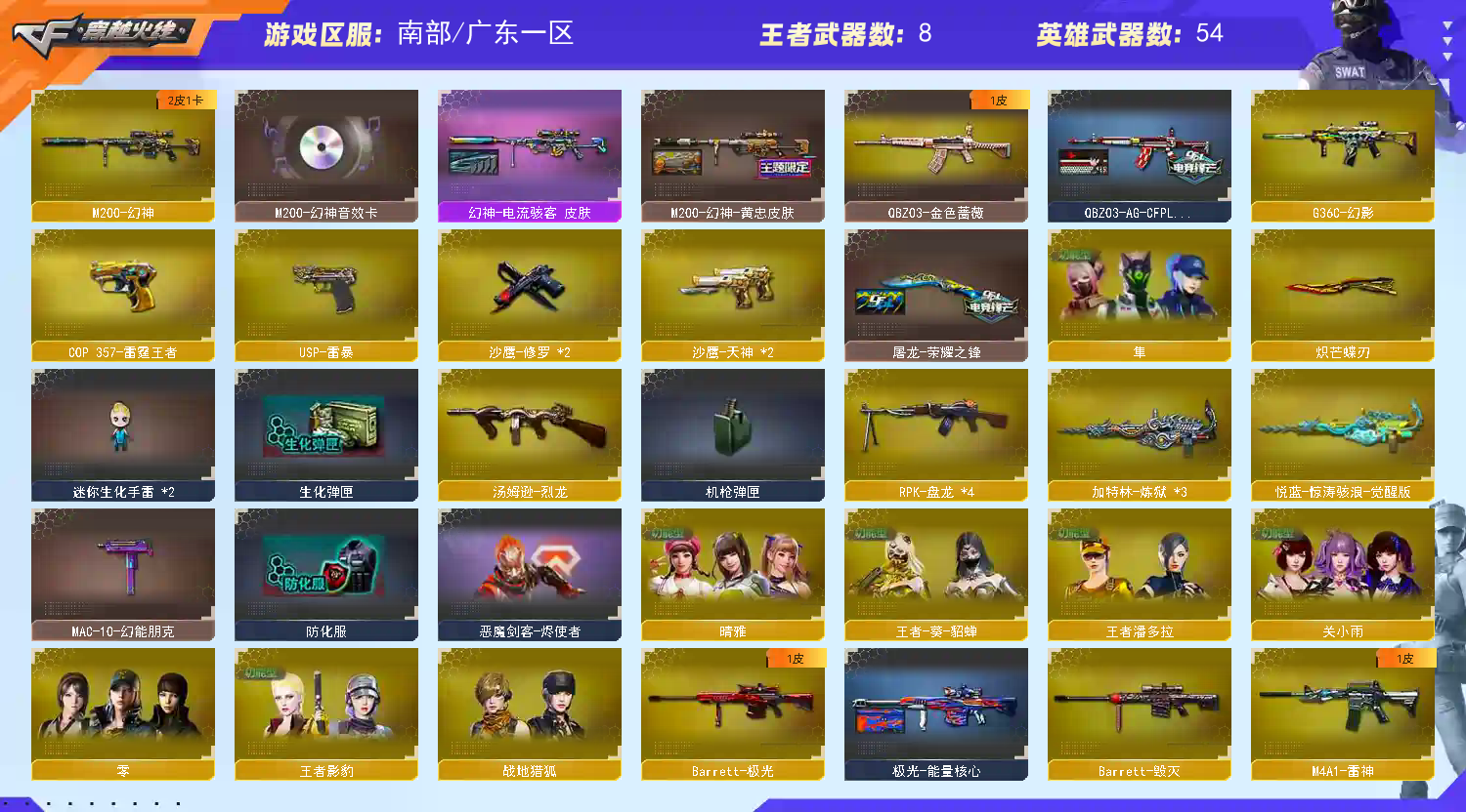 幻神三件套 幻神+电流骇客+黄忠+音效卡 王者风神 王者之翼 王者森决 USP雷暴 炽芒蝶刃 COP雷霆王者 白虎-电玩蓝兔 QBZ金色蔷薇+AG-CFPLS19冠军 G36C幻影 火麒麟+枪娘凯萨林 黑骑士+音效卡 黑武士CF网剧冠军套装 4盘龙 3炼狱 COP白鲨 悦蓝惊涛骇浪 屠龙+荣耀之锋 擎天+冠军之击 雷神-精英刀锋 火麒麟-灵狐 王者葵貂蝉 王者潘多拉 王者影豹 隼;USP-雷暴,炽芒蝶刃,隼,晴雅,RPK-盘龙,QBZ03-金色蔷薇,G36C-幻影,